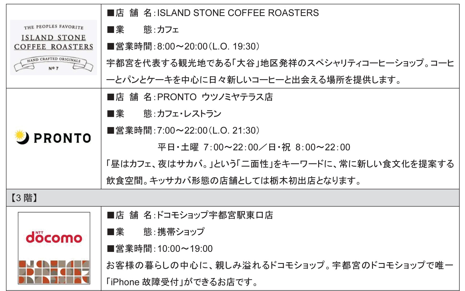 地域を活性化するテナントの誘致や地域の魅力ある情報の発信によって宇都宮全体の価値の向上・賑わいの創出に寄与することを目的として、隣接する大型交流拠点施設「ライトキューブ宇都宮(本年11月オープン予定)」とも連携しつつ、Utsunomiya Terraceが地域や周辺住民に長く愛される“まちの顔”に育って欲しいと願っています。