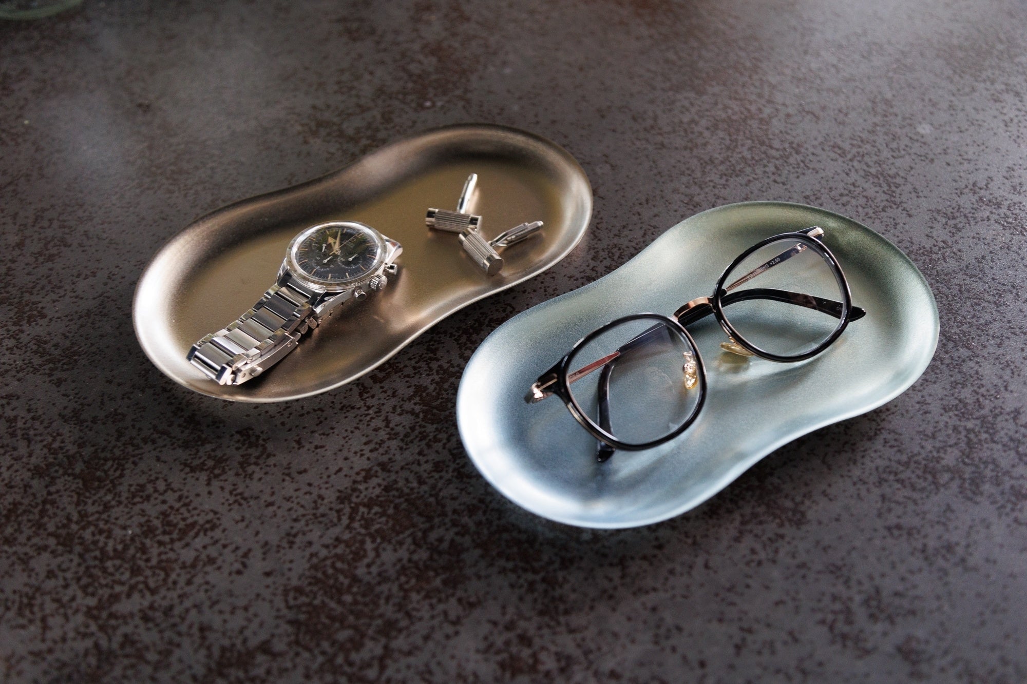 帰宅したら鍵を置く。アクセサリーや時計を置く。眠る前に眼鏡を置く。「差し色」のプレートだからこそ、自然とそこに目が行き、物を置いて整えることができます。