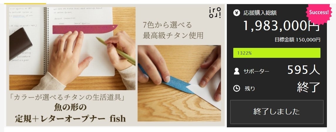 アタラシイものや体験の応援購入サービスMakuake「定規+レターオープナーfish」
