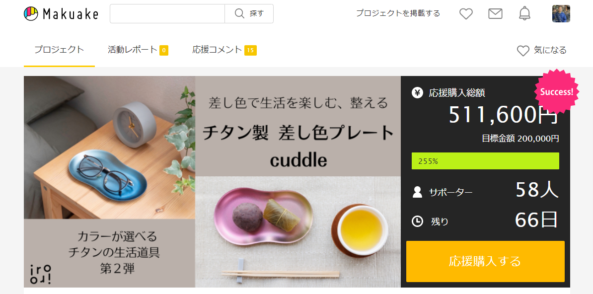 チタン製「差し色プレート cuddle」売れ行き好調!町工場がMakuake第二弾に成功、1日で応援購入金額50万円を達成