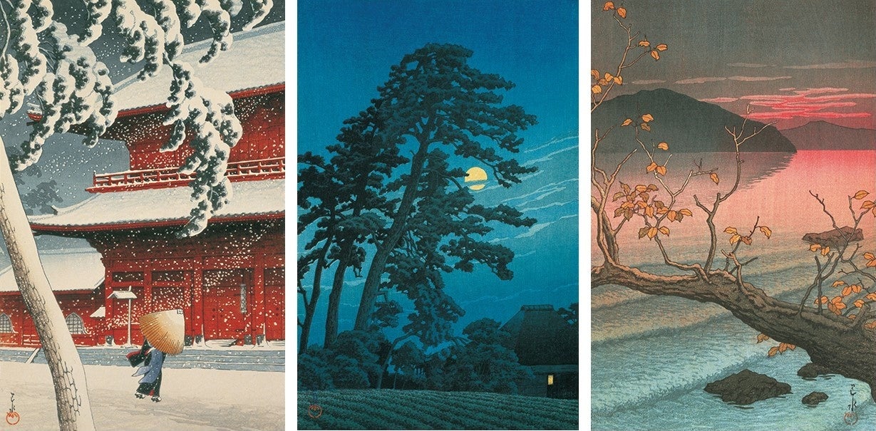 絶筆《平泉金色堂》を含む、新版画界を牽引し続けた巴水の作品世界をお楽しみください。