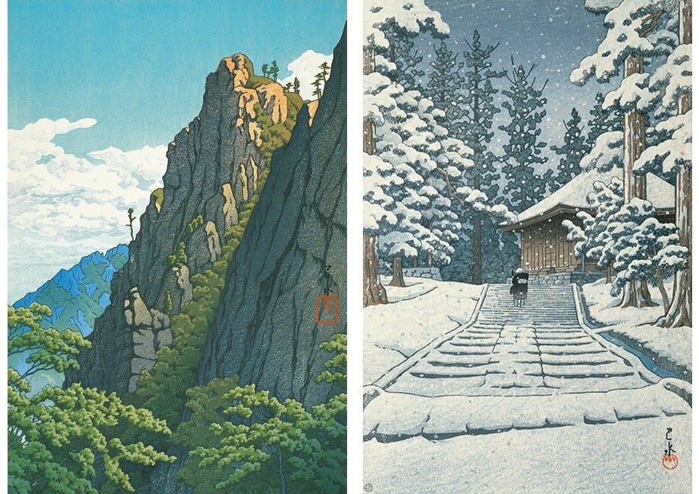 左:《金剛山三仙巖》朝鮮八景 1939(昭和14)年8月 木版・紙