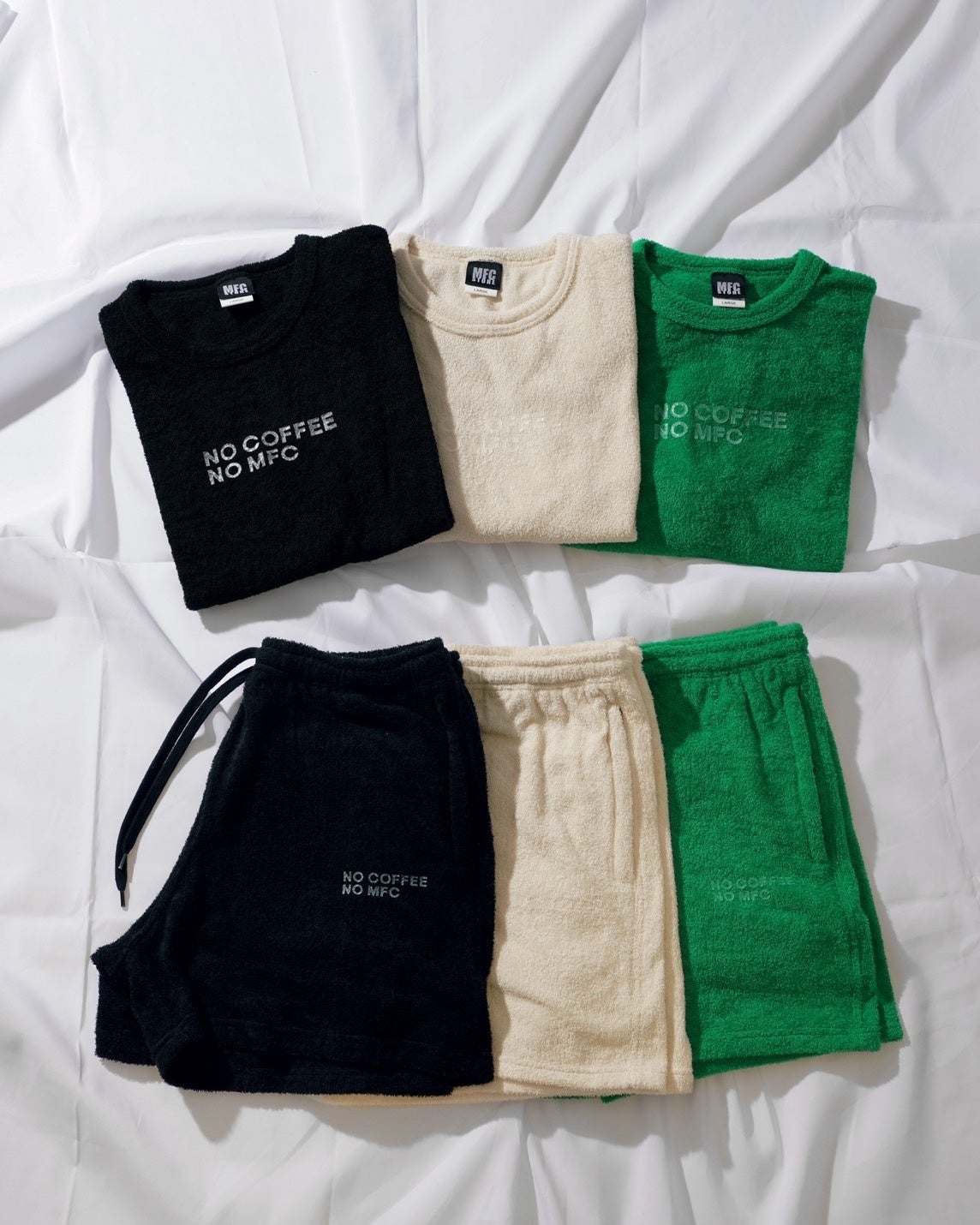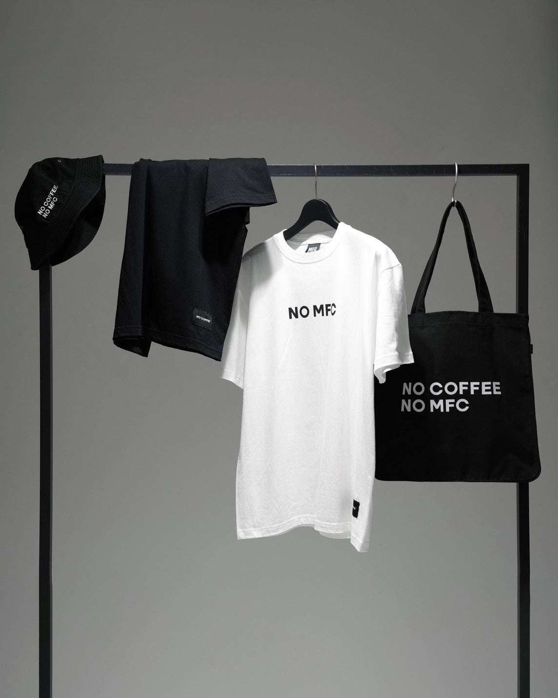 ”NO COFFEE NO MFC”のロゴを配置した、アパレル・グッズ含む全6型が登場。