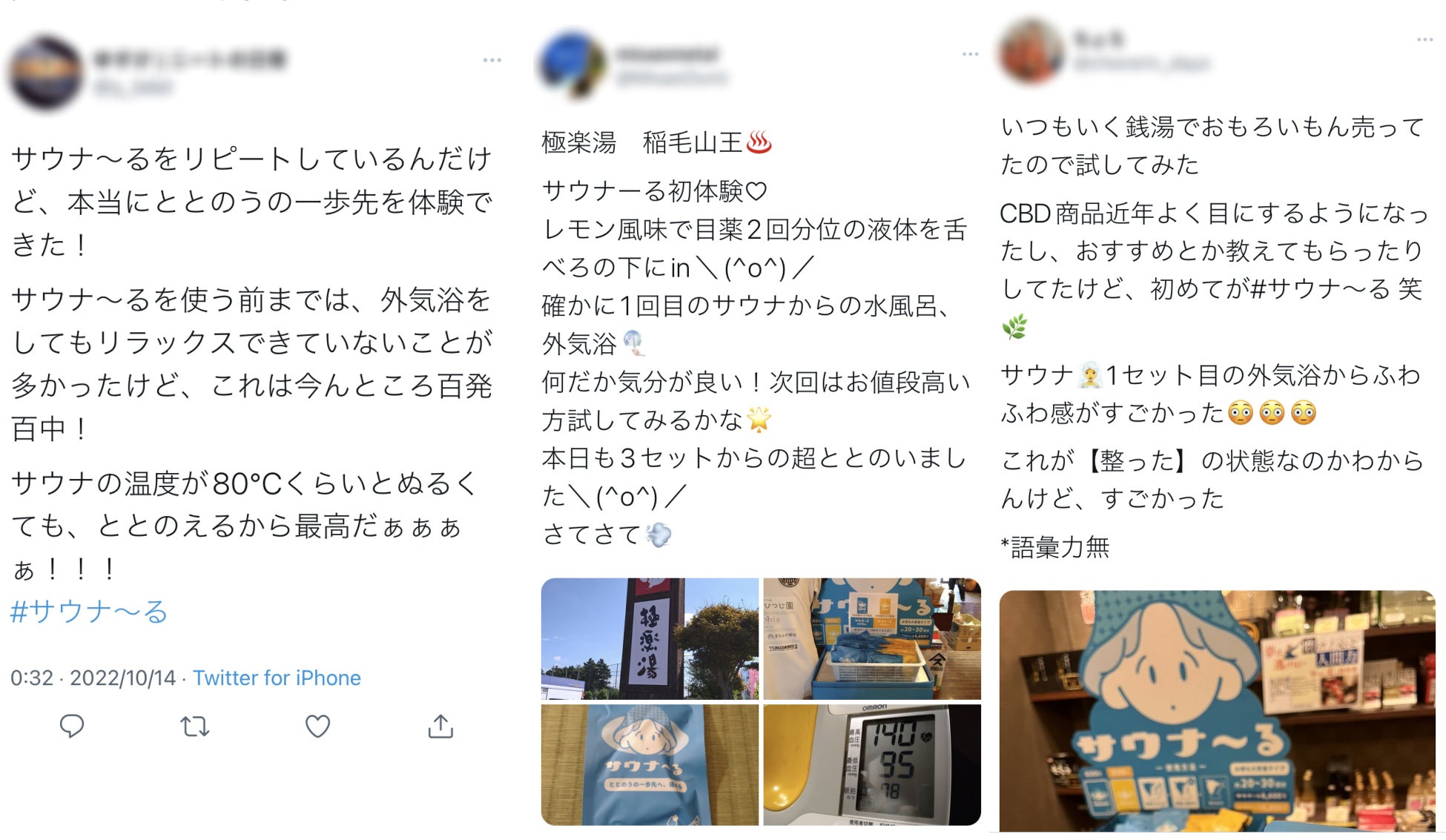 「サウナーる」が売り切れる温浴施設も続出しており、追加発注をいただくことも多いです。また、リピートしていただくお客様も多くいます。リピーターの方は、温浴施設で同商品を利用してから、ECサイトで5個セットタイプや大容量タイプをご購入いただいております。