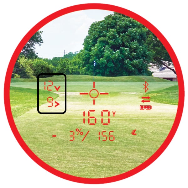 液晶上に「風速」「風向き」が表示され、番手選択やショットの方向調整に役立つ。