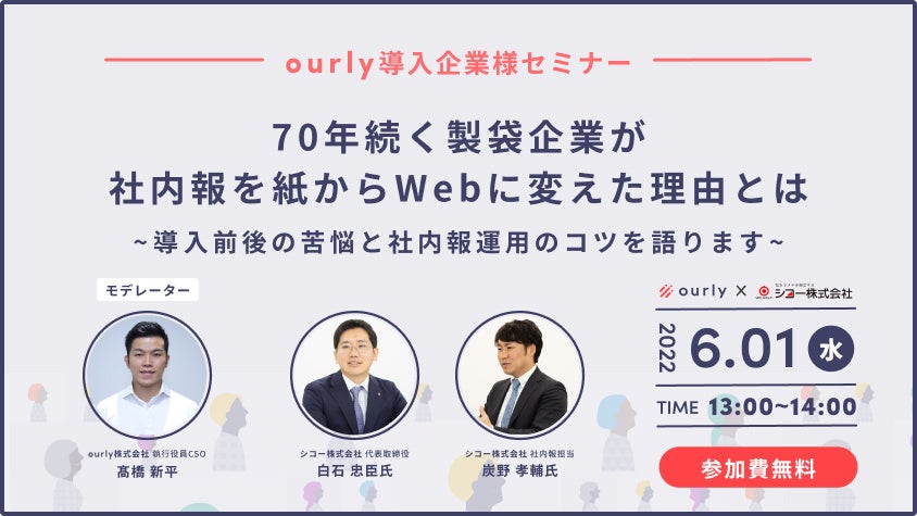 この度、ourly株式会社(本社:東京都品川区、代表取締役社長:吉田 雅史、以下弊社)が提供するインナーコミュニケーションを活性化するweb社内報『ourly』の公式アンバサダーにシコー株式会社(本社:大阪市北区、代表取締役社長:白石 忠臣、以下シコー社)が就任しましたことをお知らせいたします。