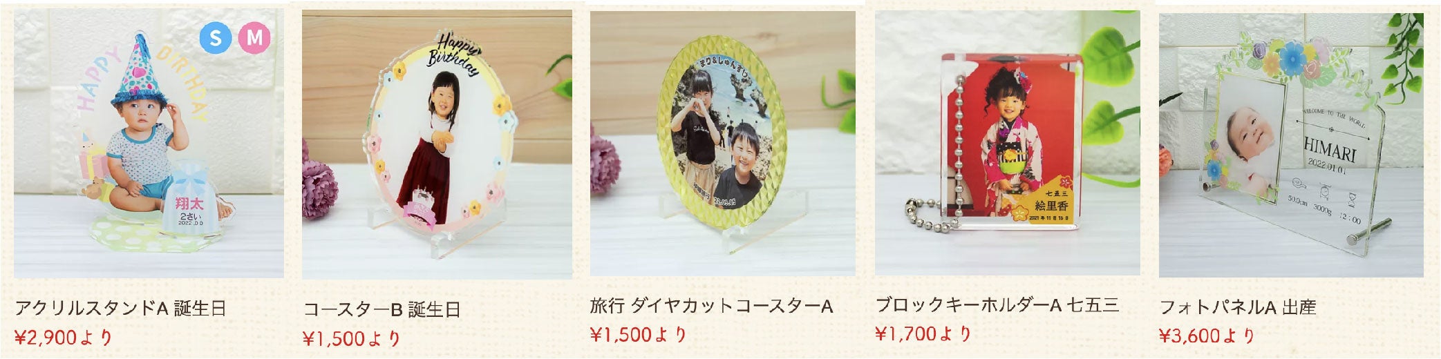 家族向けけのオリジナルグッズのオンラインショップです。ハレの日の記念や思い出をオリジナルグッズとして形に残すお手伝いをします。具体的には、お客様がカメラや携帯で撮影した人物写真を使用して、オケージョンに合わせたオリジナルのグッズが制作できます。出産、誕生日、入学、卒業を祝うギフトとしてもご利用いただけます。