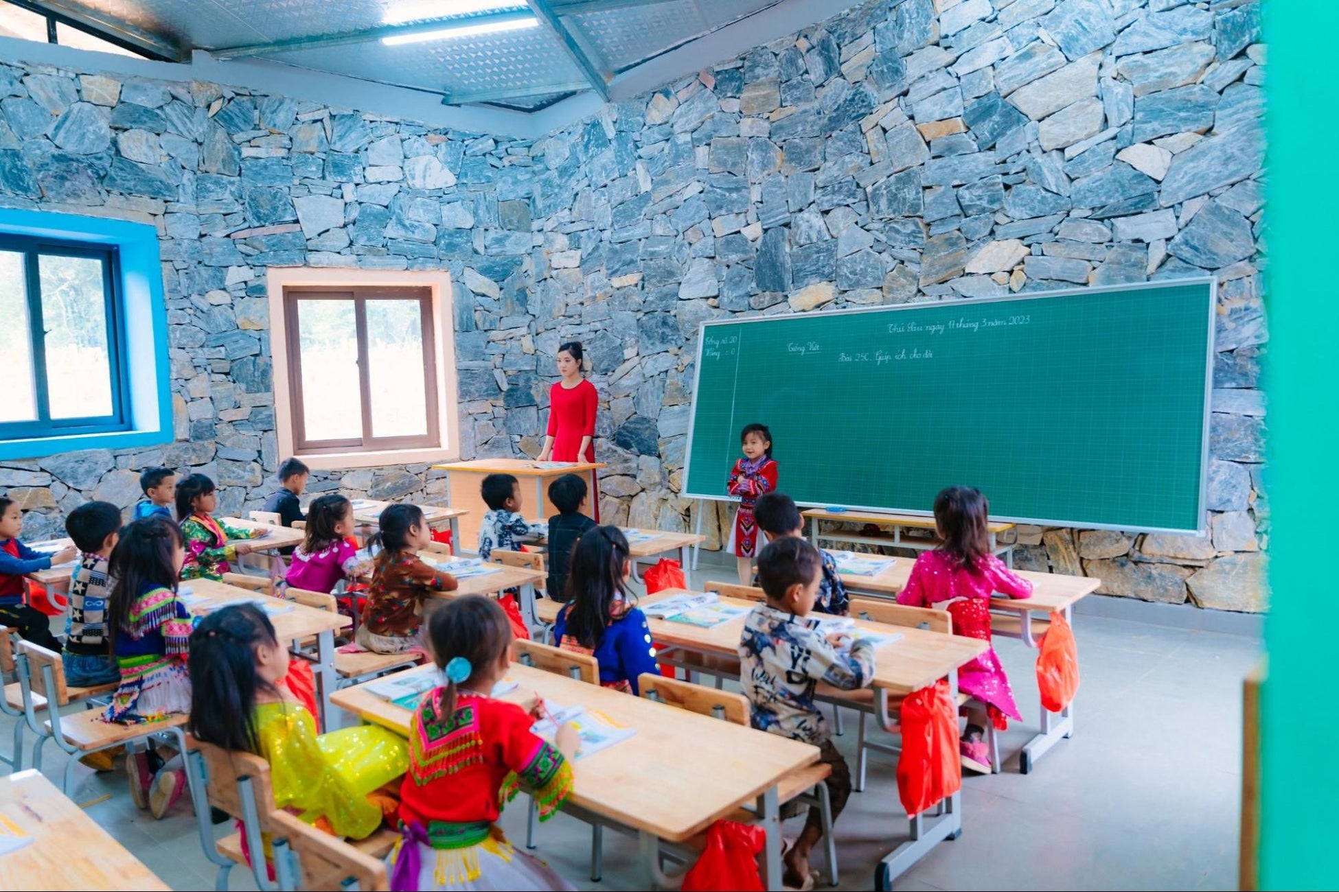 Tham Luong分校には245人の小学生と56人の幼稚園生が在籍しており、Du Gia Communeの中では大規模な分校にあたります。貧困世帯が多いことから、学校を中退する生徒の割合が高く、山岳地帯に位置しているため、通学路に様々な難所も存在しています。教室は狭く、照明設備も十分ではなく、建物は劣化しており、安全ではなかったため整備する必要がありました。このような状況を踏まえ、ミダス財団は2022年夏に新校舎の建設を開始しました。
