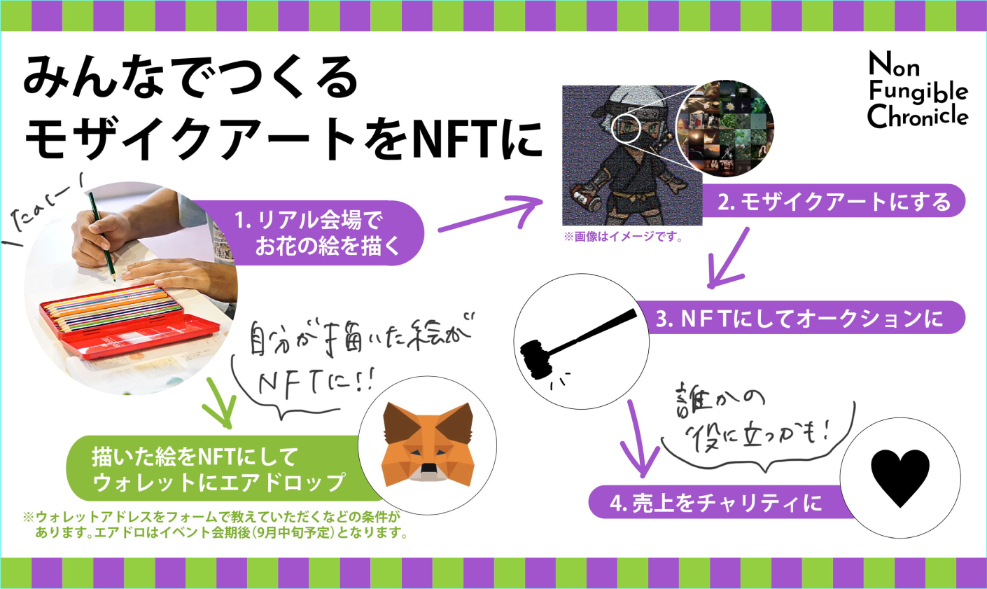 さらに、それぞれのモザイクピースは、後日NFTにしてみなさまそれぞれのウォレットにエアドロップします(エアドロップは希望者のみ。9月中旬予定)。