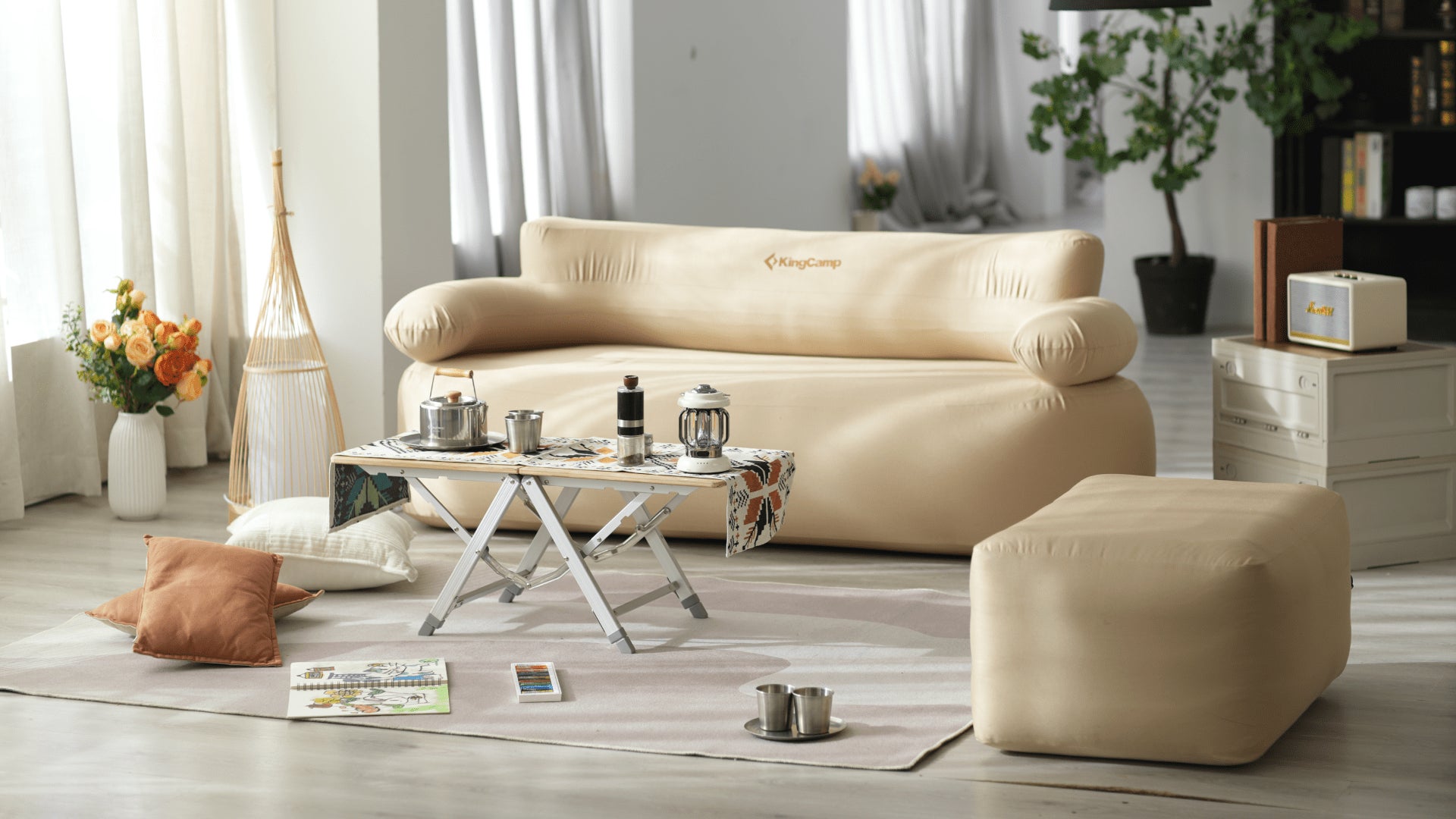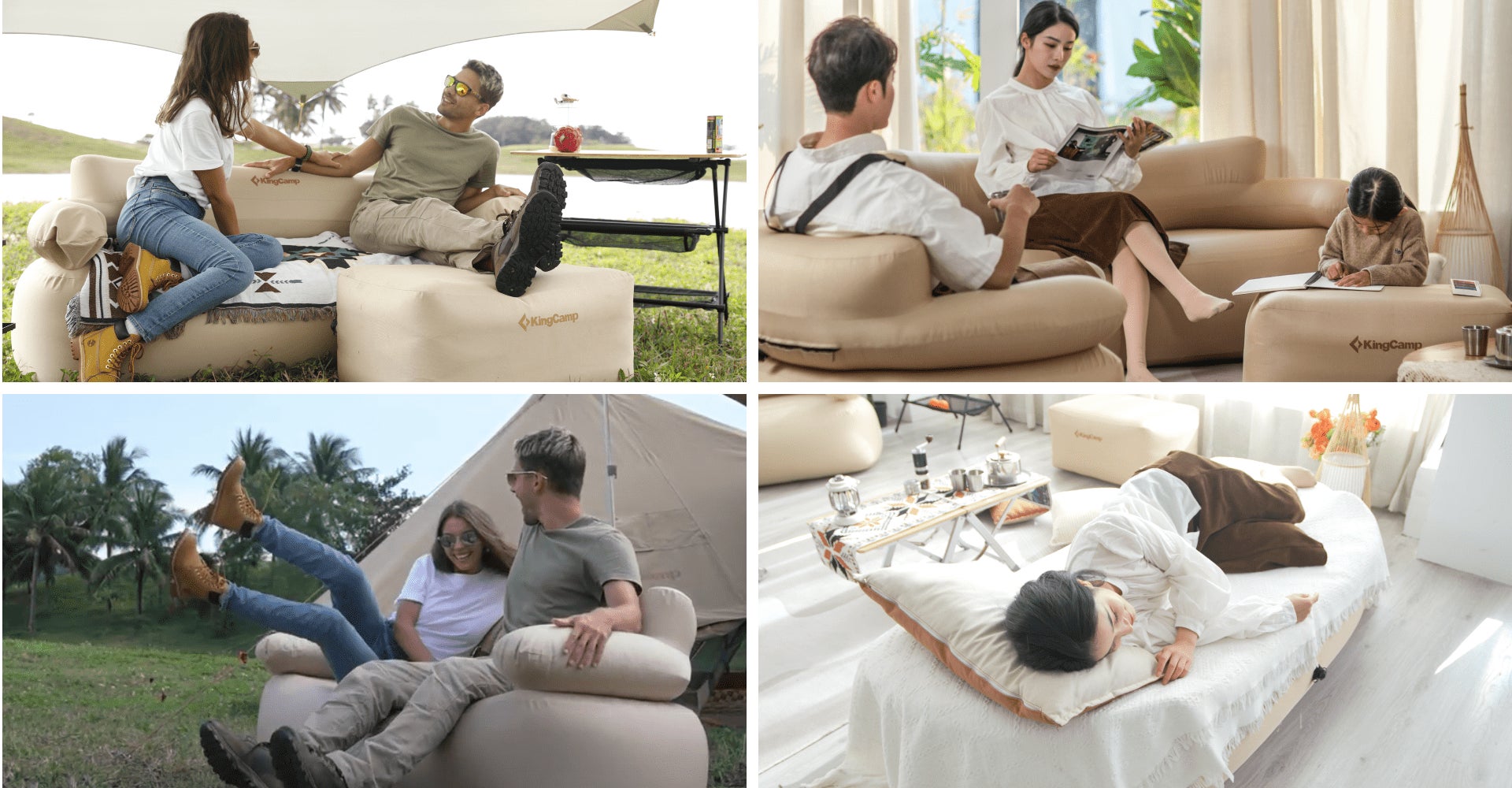 アウトドアでもインドアでも!今までにない使い方やまるまる洗える利便性。「KingCamp」最新作のエアソファーがMakuakeにて予約販売開始!