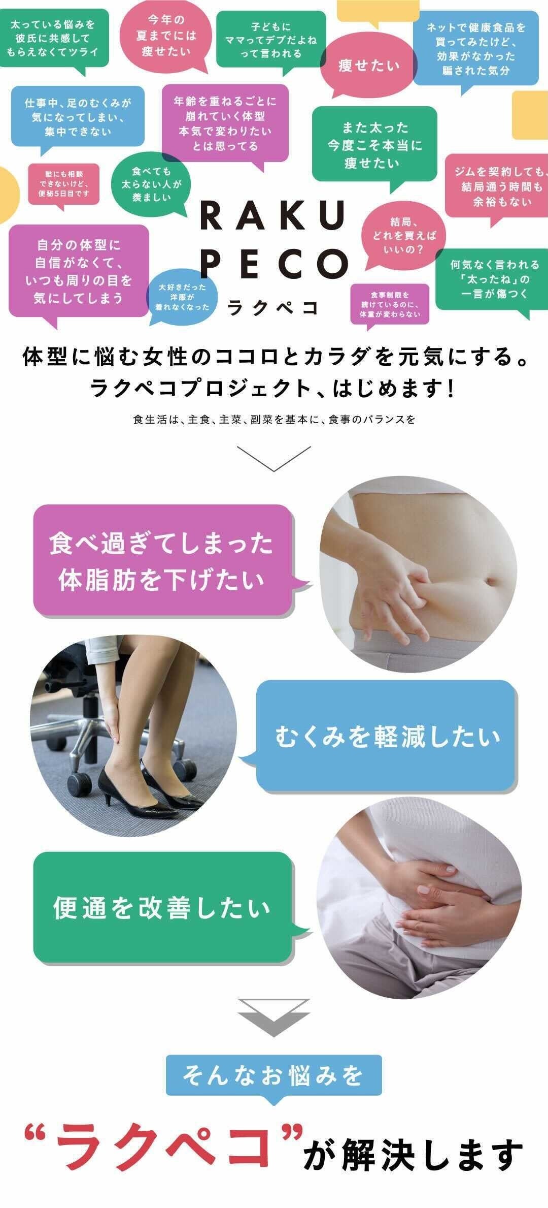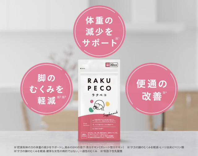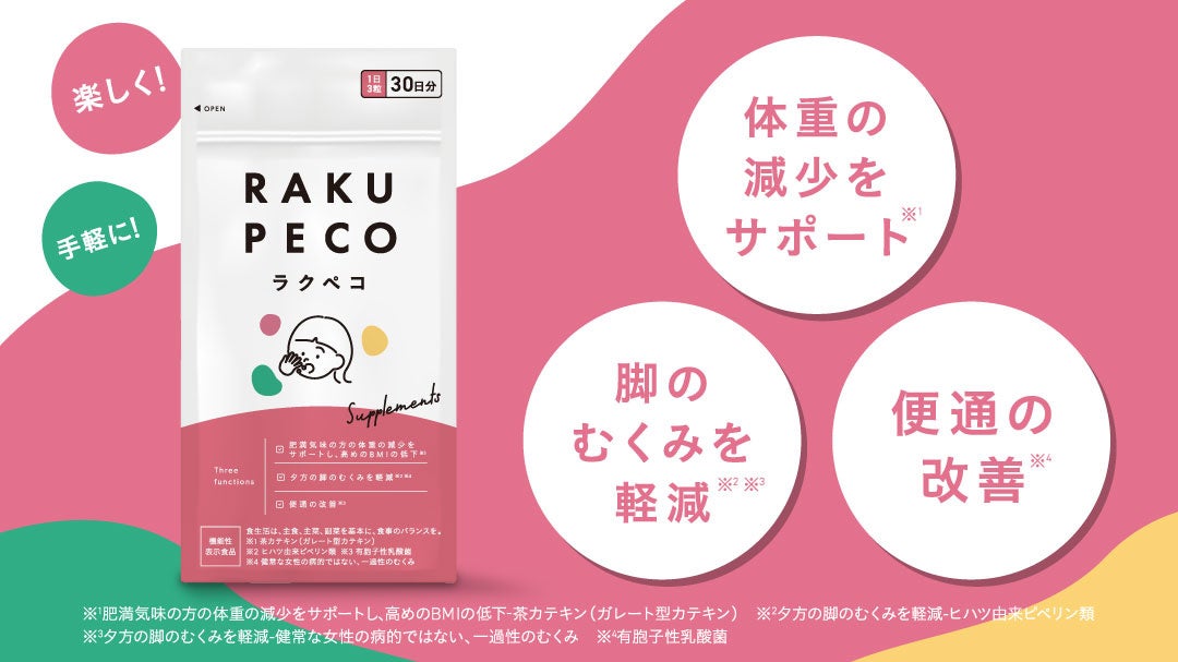 クラウドファンディングMakuake初日で達成率 100%超え!「体重の減少サポート」「むくみ軽減」「便秘解消」の3つの機能が報告された機能性表示サプリ『ラクペコ』