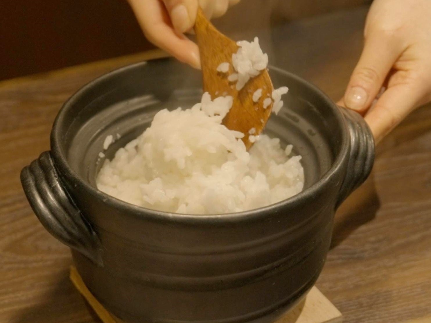 日本各地から厳選した玄米を毎日自家精米し、こだわりの水と土鍋で一組様ずつ丁寧に炊き上げます。