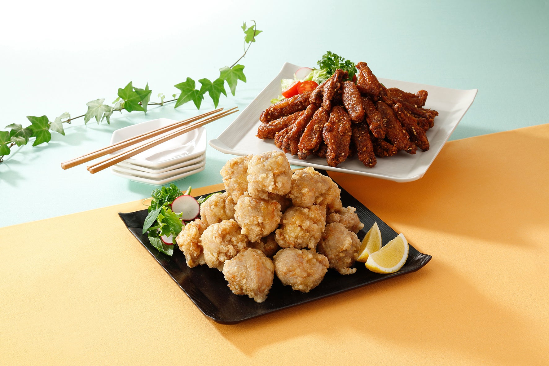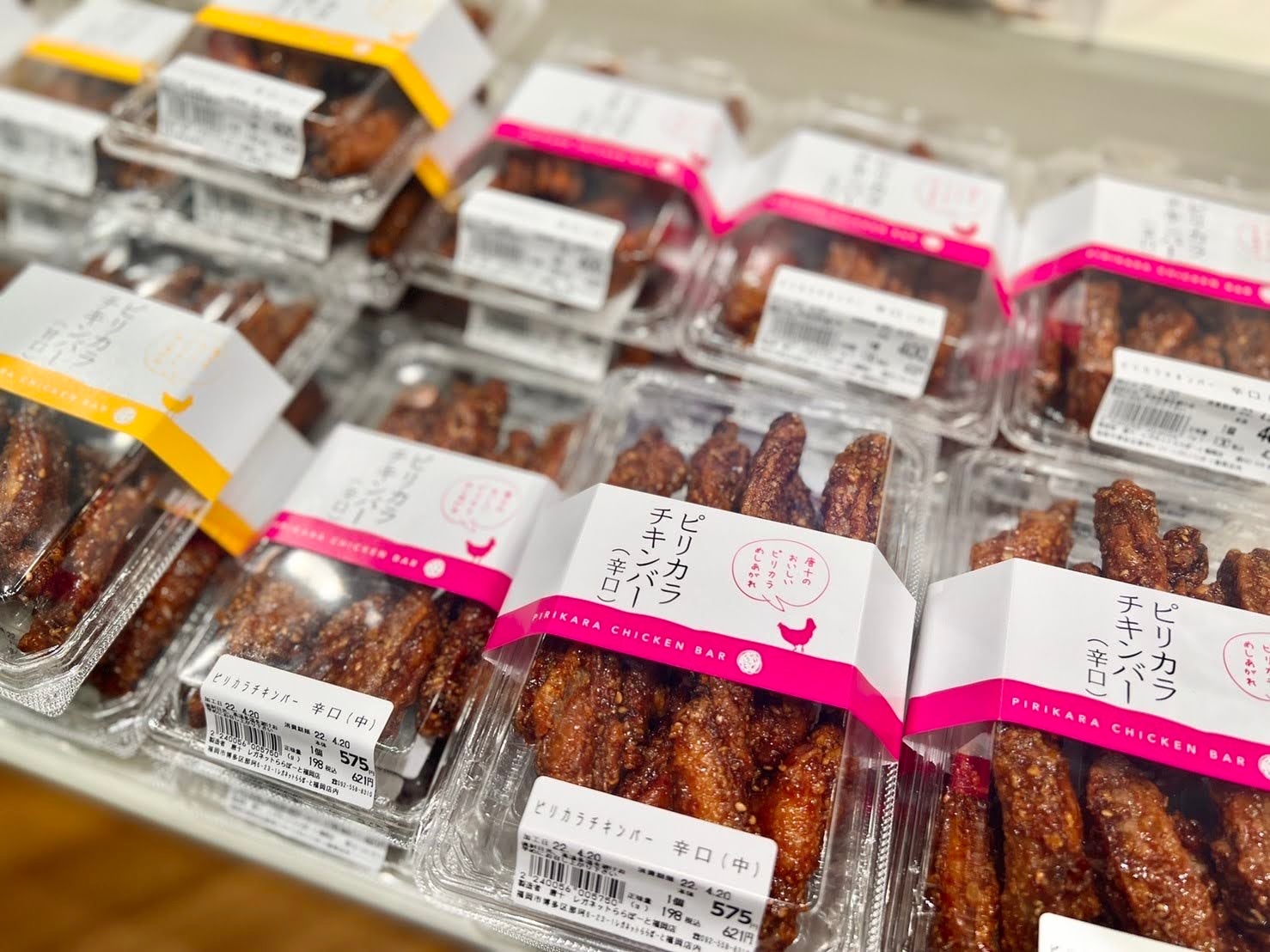 ピリカラチキンバー、唐十からあげ、手羽から、あっさりチキンバー、やみつき手羽十、地鶏飯おにぎり、芋から、焼き鳥各種、とりかわ、手羽十、ぐるぐる鶏皮串、唐十コロッケ、鶏皮餃子、砂肝竜田揚げ、おにから、ミックス弁当、二段弁当、ほか多数