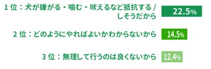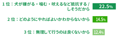 第2位には「犬の年齢が高く、犬のオーラルケアのしつけが難しいから」と「犬が逃げてケアをさせてもらえないから」の2つの理由が、それぞれ20.5%の割合を占め、ランクイン。
