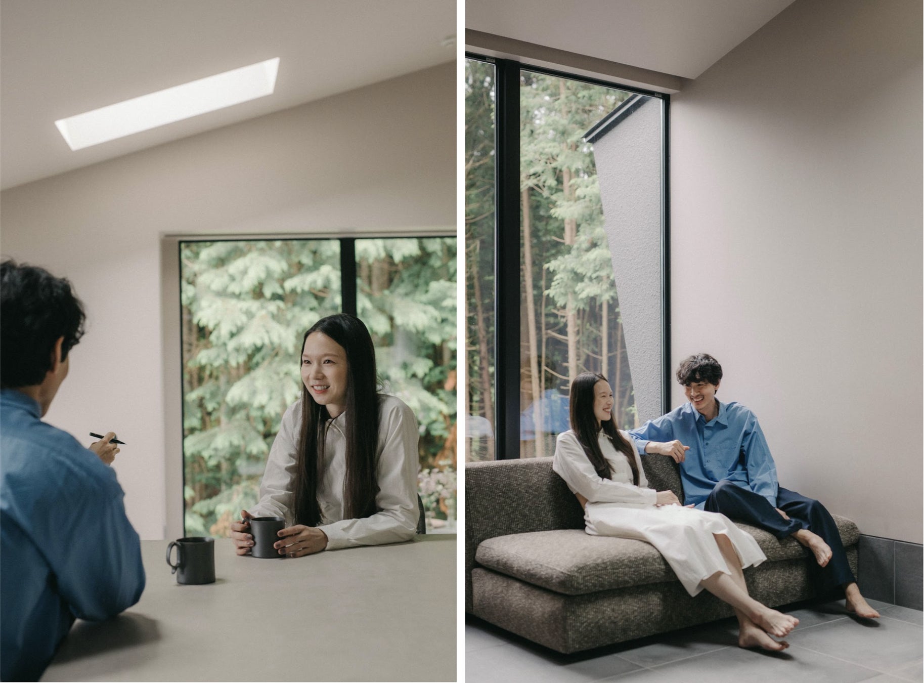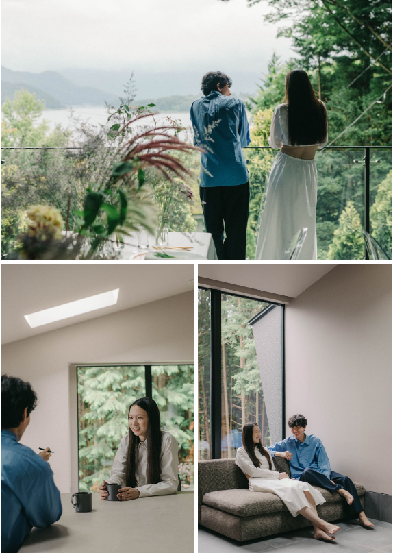 wedding norm.での撮影では、写真を残すことはもちろん、その撮影の「時間を残す」ことを大切にしています。静謐な森の中、煌く光の湖畔沿い、霞がかる丘の上など河口湖の雄大なロケーションで撮影を行い、写真と共にそこでの体験が記憶に残るようお過ごしいただけます。ホテルでは、日常の喧騒から離れて、norm.の象徴的なアイランドキッチンで料理をしたり、テラスから夜空を眺めたり、焚き火を囲んで語り合ったり、河口湖の湖畔を散歩したりと思い思いの時間をお過ごしください。