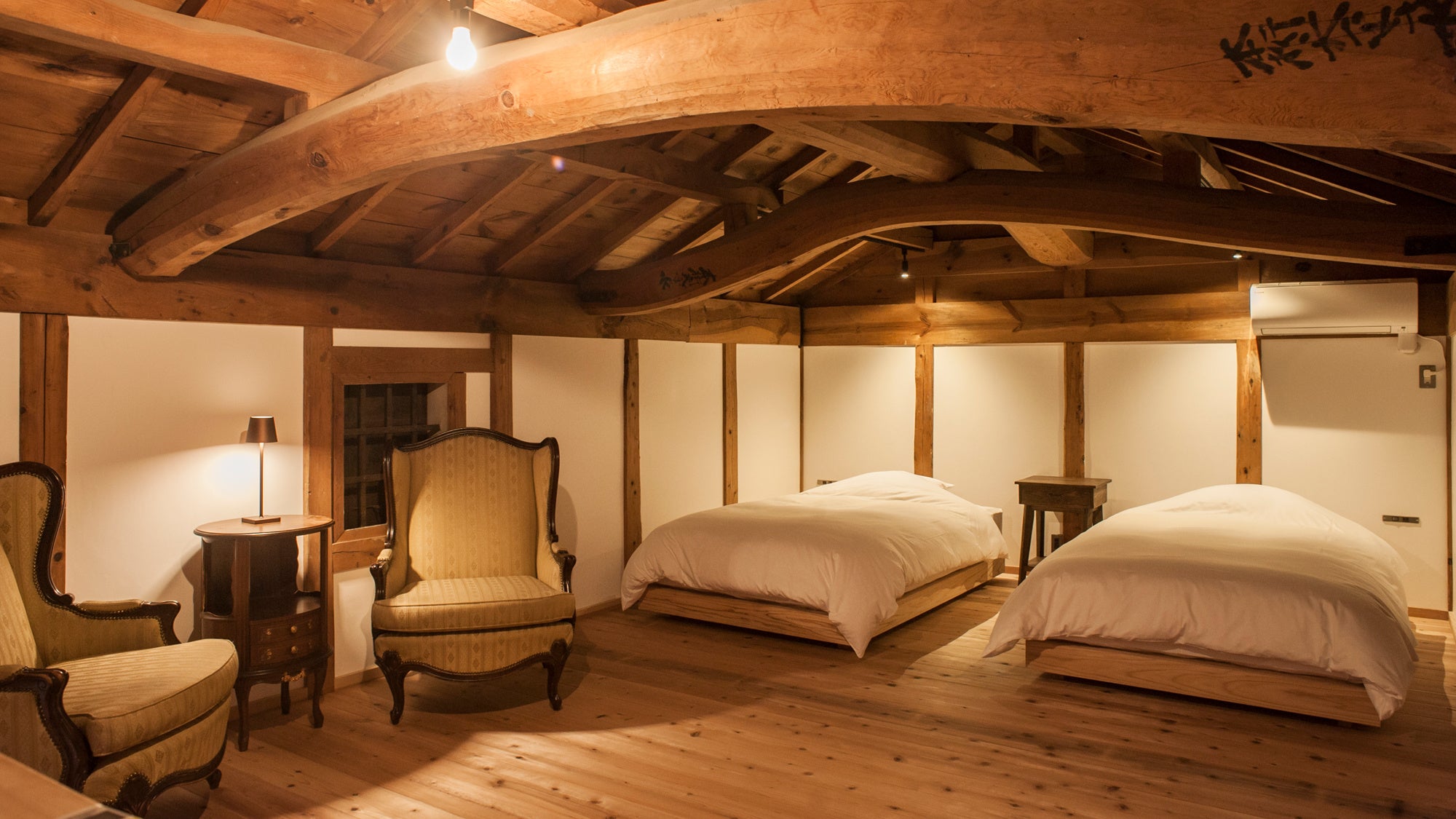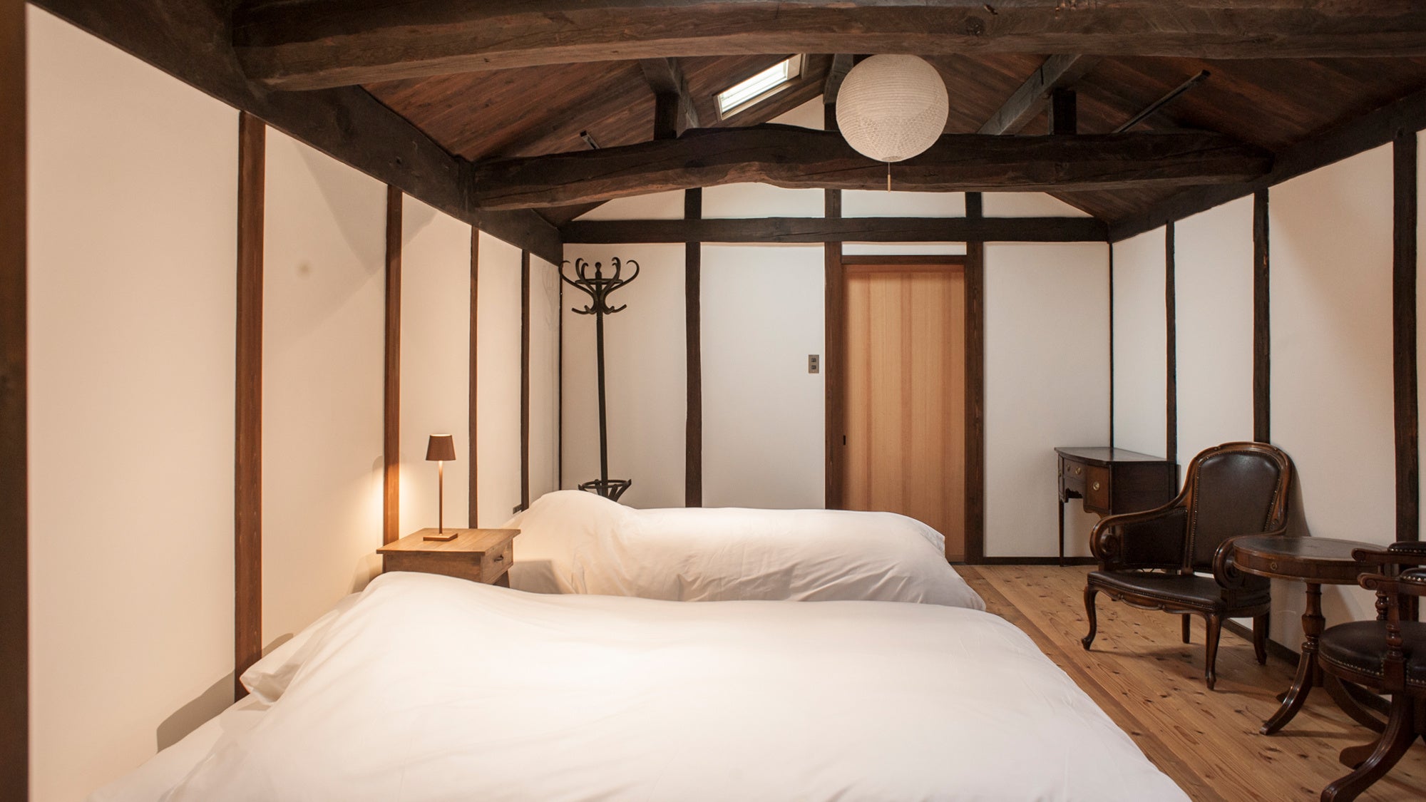 天窓を設けた寝室と長い廊下にアンティーク家具を配置した大正ロマンを感じさせるお部屋。