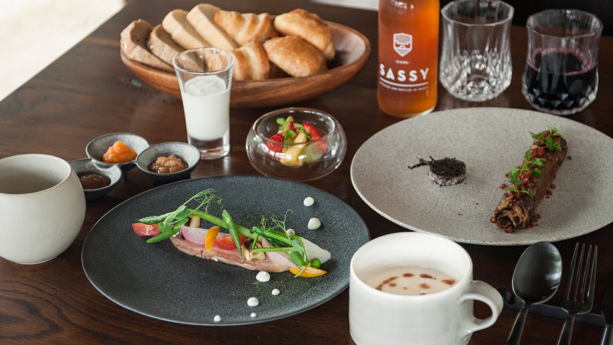 「からだの中から美しく」。美と香りをテーマにした料理は、フレンチをベースに出雲産のしじみの出しなど和のテイストを忍ばせたヘルシーでやさしい味わいが特徴。農家から直接仕入れる野菜、新鮮な魚介と島根和牛など、ひと皿ごとに香りを意識した見た目も美しい料理は、地酒の香りや味わいとの相性をお楽しみいただけます。心穏やかになる時間と、旅の記憶に残るような美味しい香りのフレンチをご提供いたします。
