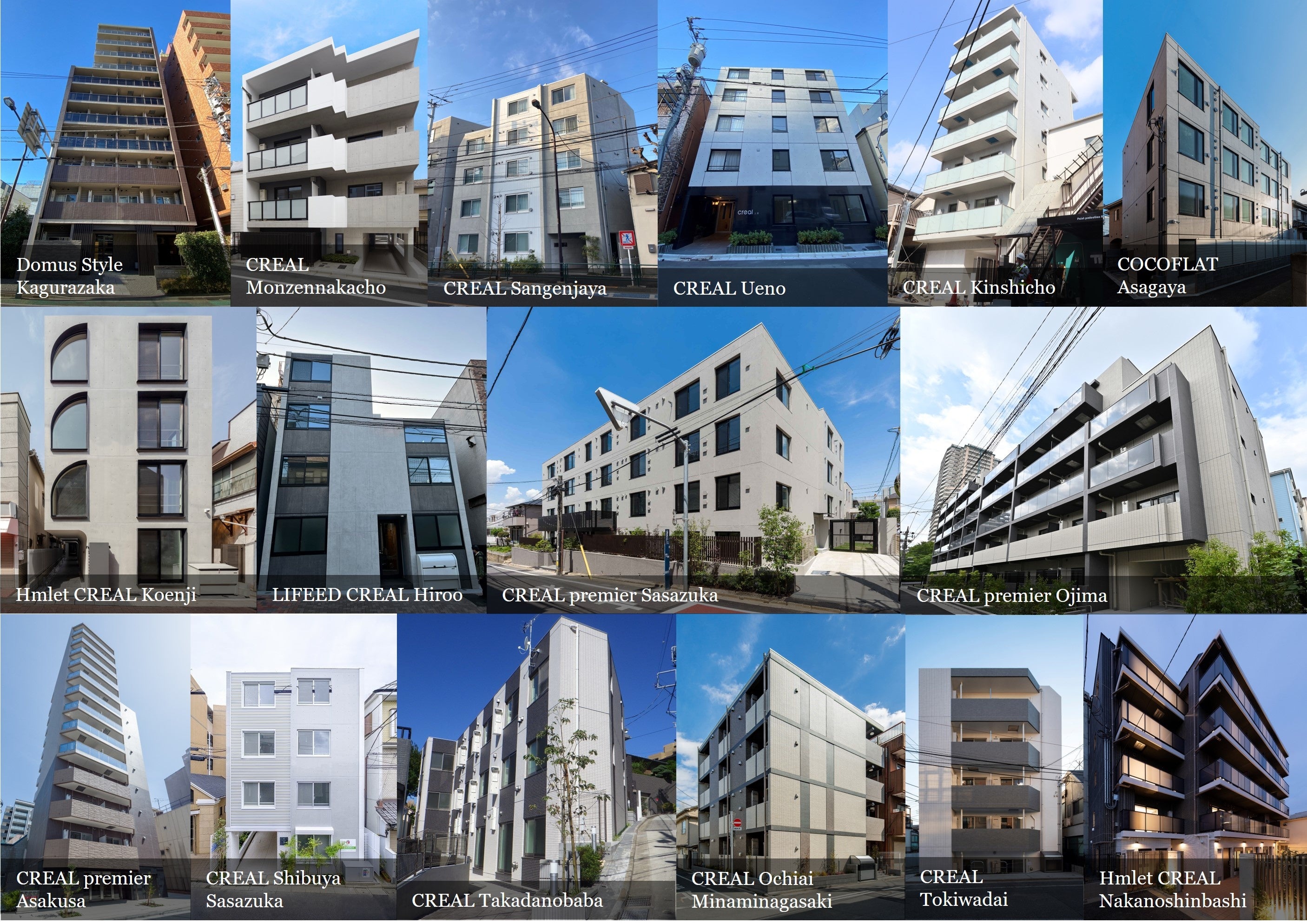 当住宅ポートフォリオの総延べ床面積(GFA)は68,432平方メートル(20,701坪)で、東京の21物件、名古屋の3物件、大阪の5物件、京都の1物件、横浜の1物件、札幌の1物件、計32物件から構成されています。すべての物件は最寄り駅から平均徒歩6分程度と交通の便が良い好立地に位置しています。