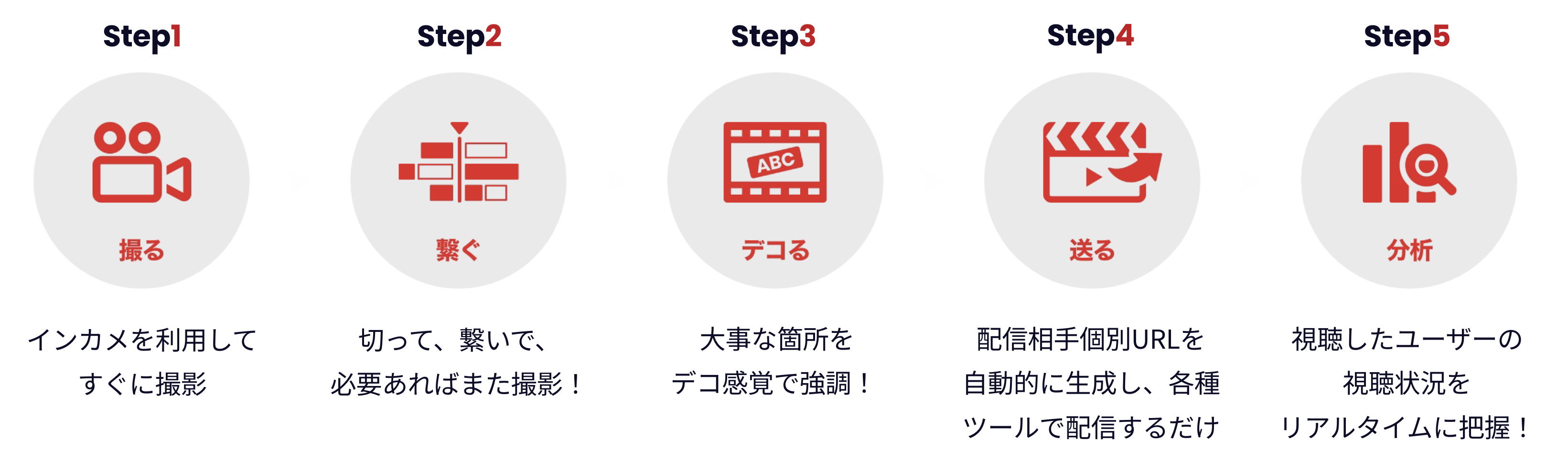 以下のステップでどなたでも簡単にビデオプレゼンが作成でき、セールスDXを始めることができます。