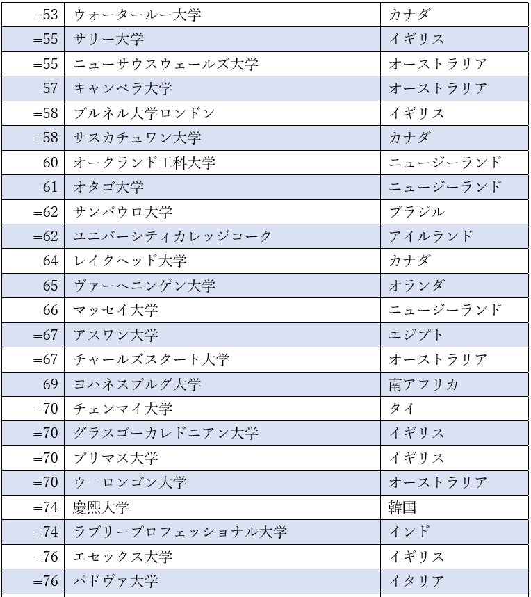 一方、英国は総合ランキングトップ100に20校と最も多くの大学がランクインしました。オーストラリアはこれに追随する形でトップ100に17校、カナダは16校、ニュージーランドは7校がランクインしています。