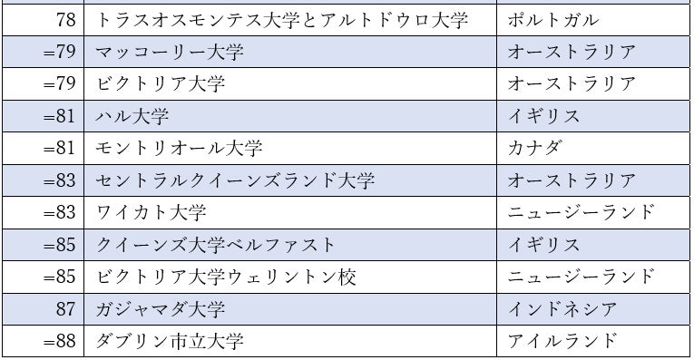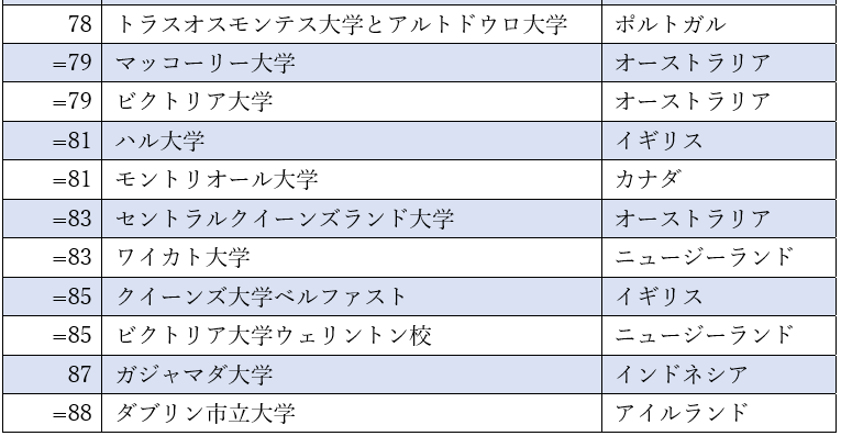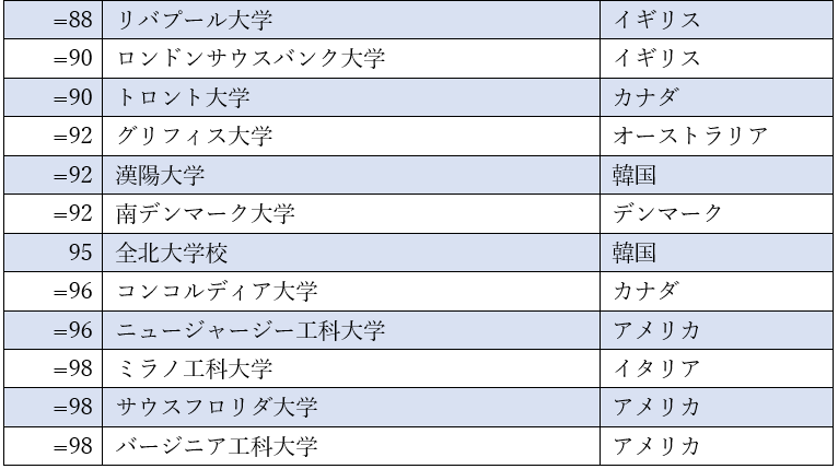 • 2022年、日本は84の大学がランクインし、全体において大学のランクイン数が2番目に多い国です。