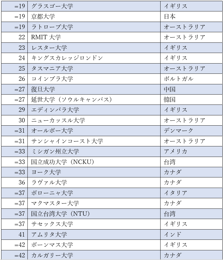 いずれの表を複製し使用する場合も、Times Higher Education(THE)を出典とし、次のリンクにより完全な結果にリンクさせる必要があります。https://www.timeshighereducation.com/rankings/impact/2022/overall