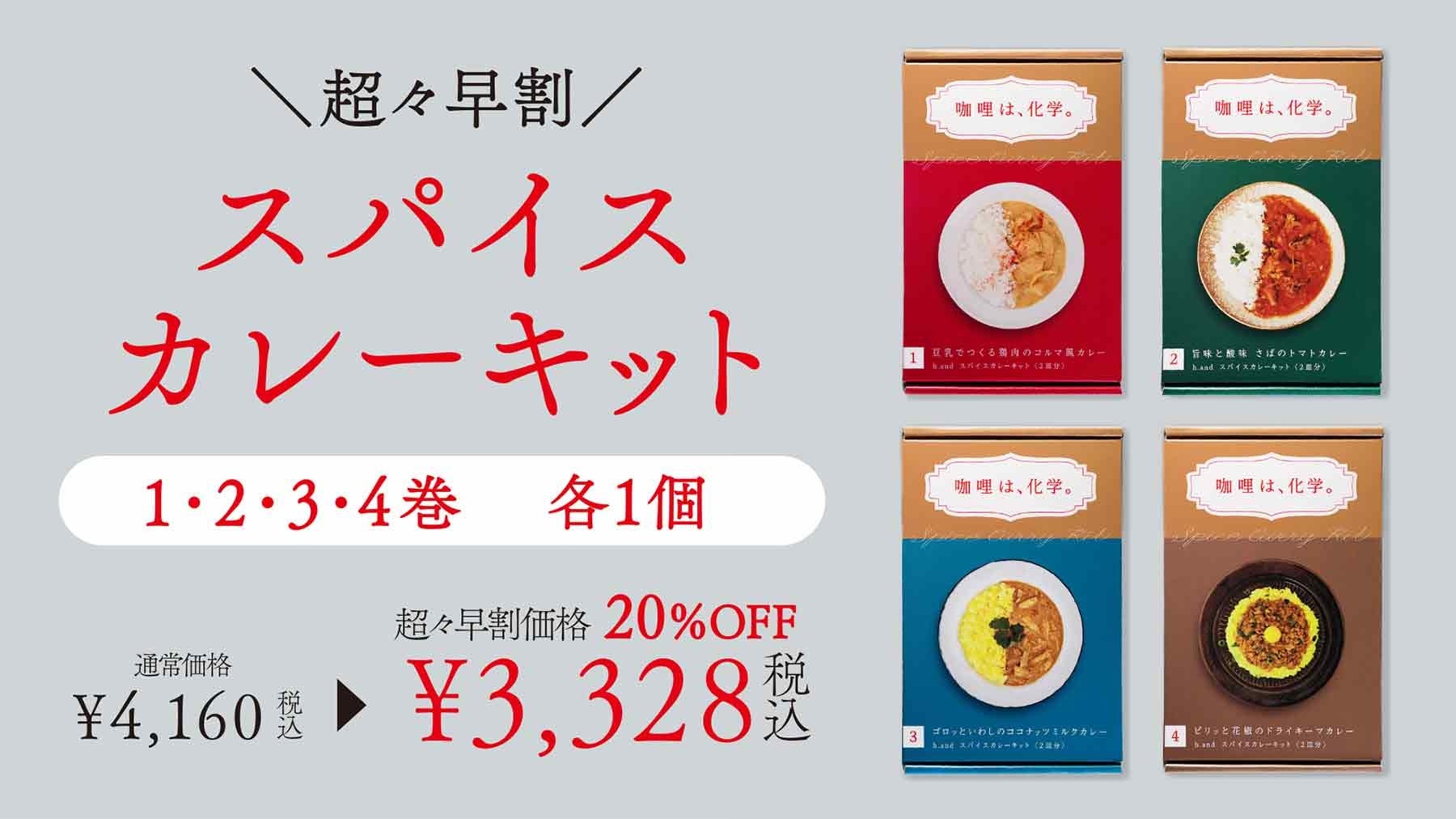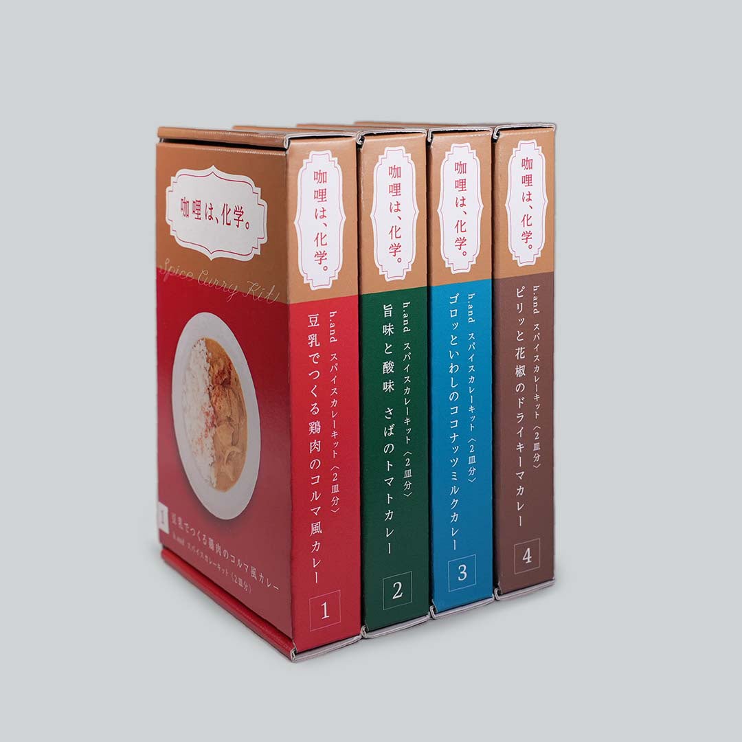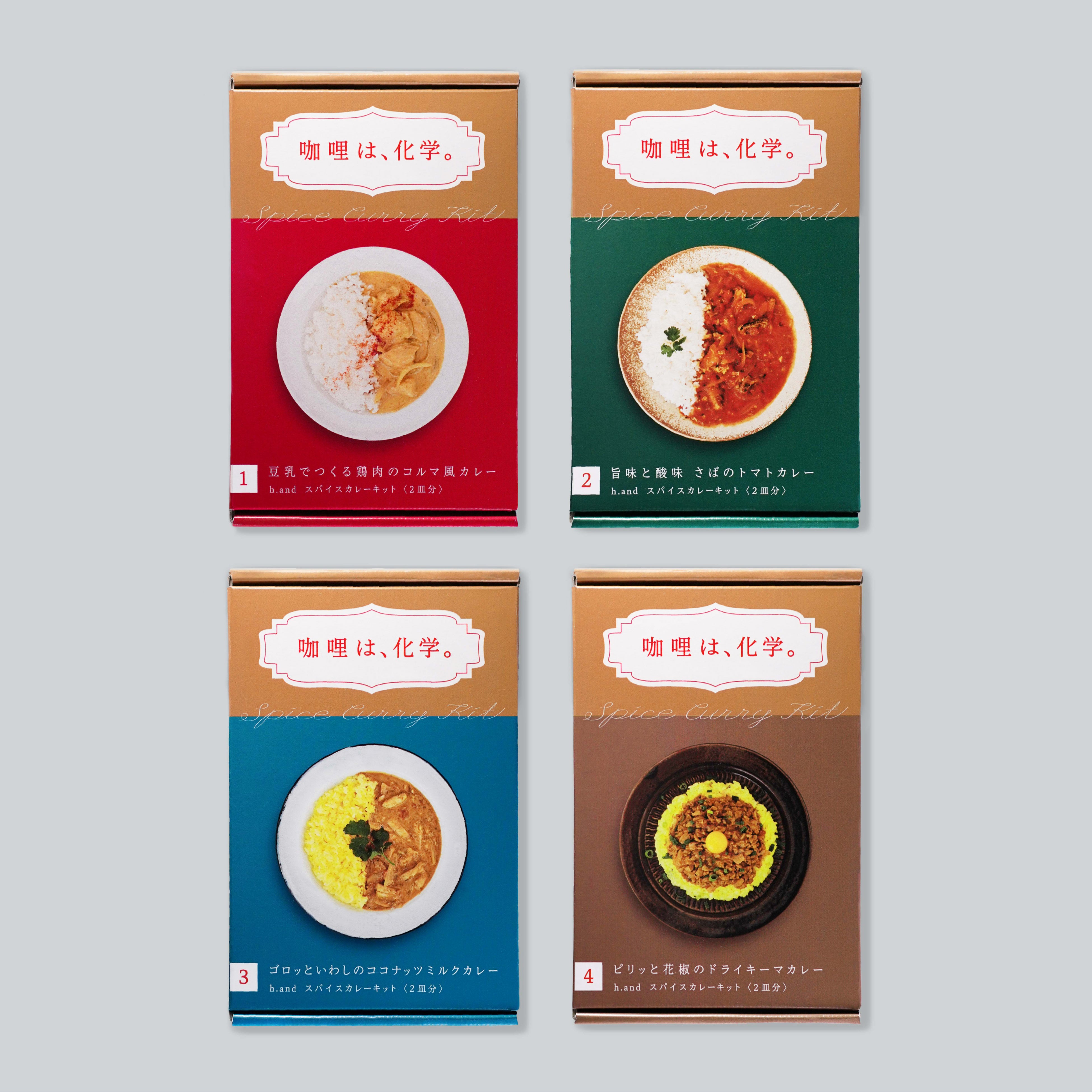 2022年5月18日(水)12:00からMakuakeにて、h.andの新商品4種類のスパイスカレーキット「咖哩は、化学。」先行販売開始しました。