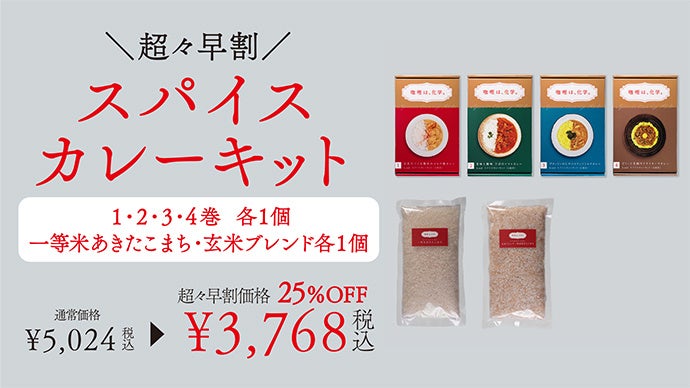【25%off】超々早割!4種食べ比べ!スパイスカレーキット&お米4合付き