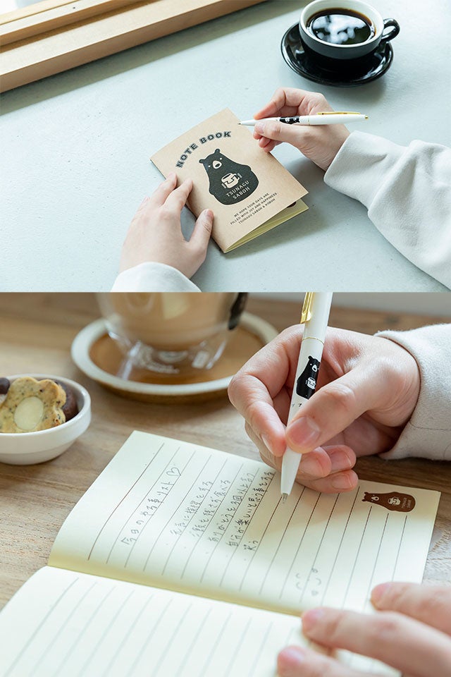 心の中の想いを整理して綴るなど、日常的に使いやすいA5サイズのノートと黒ボールペンを展開しています。