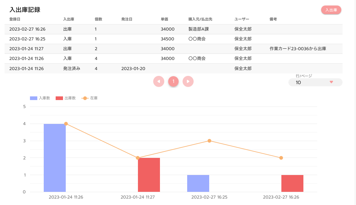 設備保全業務では、設備の停止時間を最小化するため設備故障に備えた交換部品を、余剰在庫となってしまわないよう適切な在庫数で保管する必要があります。ミロクルカルテの部品管理画面に追加された在庫変動グラフでは、入庫・出庫に伴う在庫変動をリアルタイムで見える化し、適切なタイミングで発注指示を表示、かんたんに欠品や余剰在庫を予防できるようになりました。