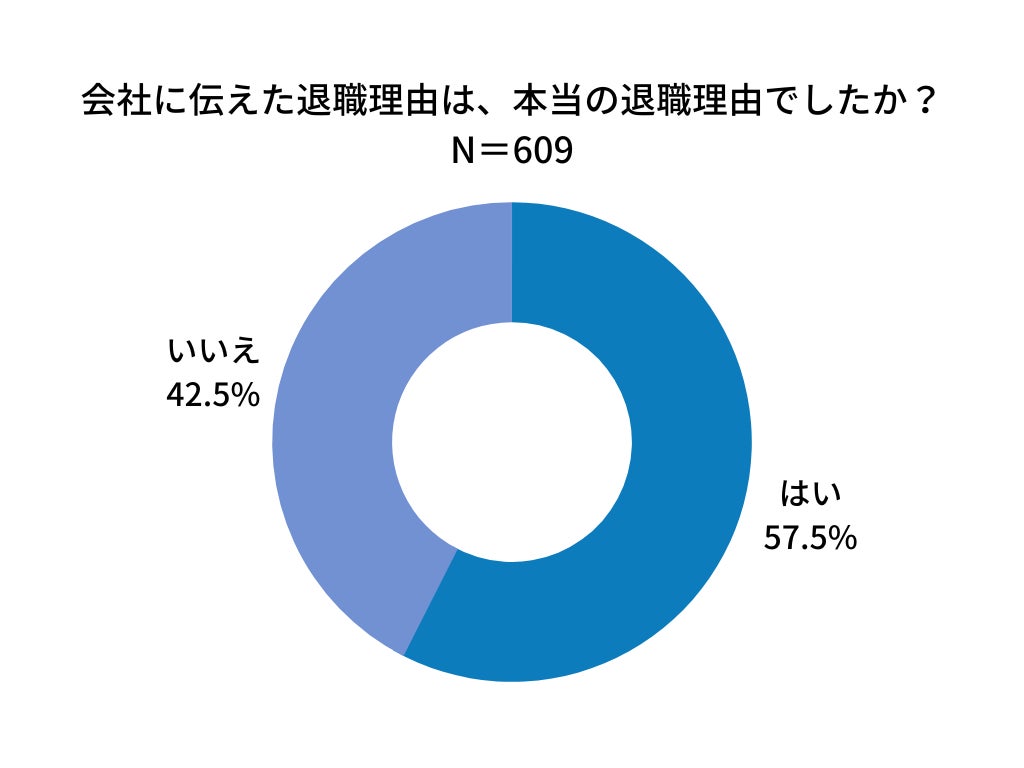 退職した経験がある609名中42.5%(259名)が「会社に伝えた退職理由はタテマエだった」と回答。