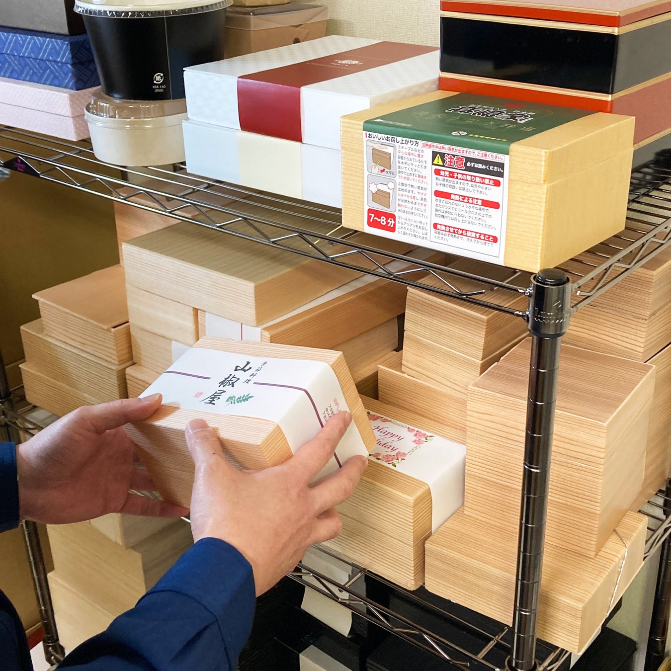 特に2段、3段の重箱容器を掛け紙がしっかりと固定します。