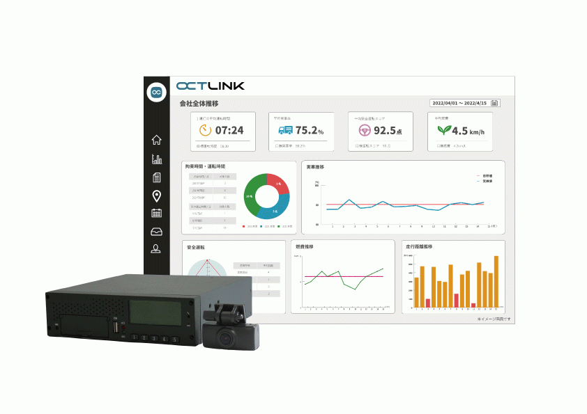 CENTLESSが開発・提供する「OCTLINK」は、車両に搭載し運行データの記録・データ通信を行うデジタコ本体と、サーバー上に送信された運行データを分析・集計・見える化するWebサービスです。中小物流事業者にも導入しやすい圧倒的な低価格のデジタコと、運行状況を可視化し的確な業務改善の判断を可能にするWeb管理画面「運行見える化ボード」により、中小物流事業者の業務改善だけでなく労働環境改善にも貢献します。