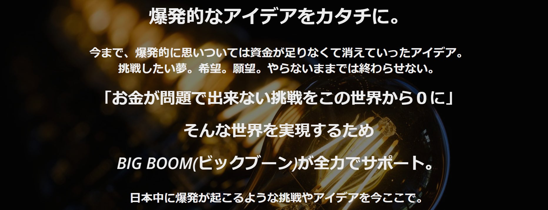 BIG BOOM(ビックブーン)クラウドファンディングは、爆発的なアイデアをカタチにできるようなサービスを創り