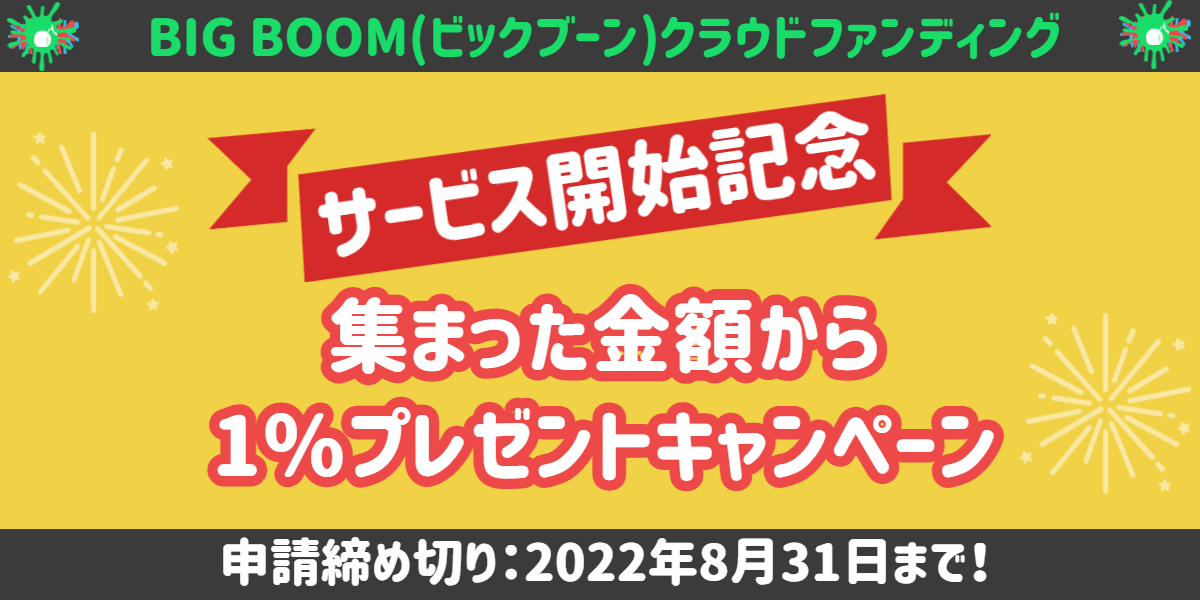 「手数料完全無料」BIG BOOM(ビックブーン)クラウドファンディングが提供開始!【サービス開始記念キャンペーンあり】