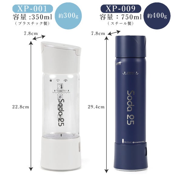 Soda25 XP-001(プラスチック製)/XP-009(スチール製)セット一式、 及び専用カートリッジ24本入りx2箱の組合せ |