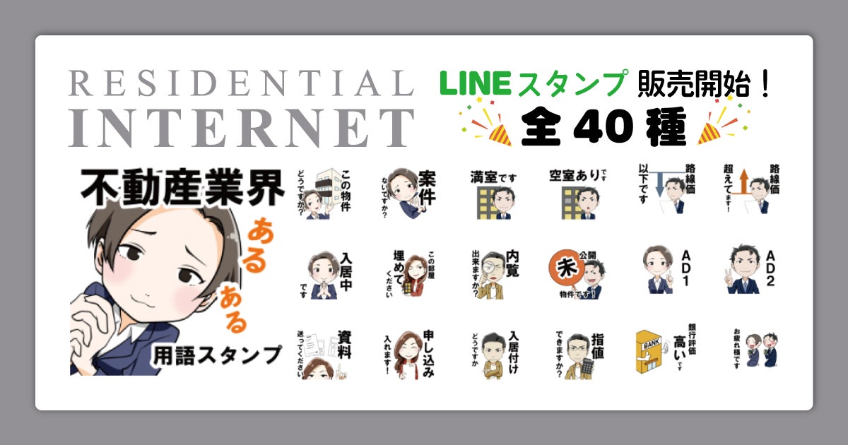 賃貸住宅特化の一棟型インターネット会社「株式会社レジデンシャルインターネット」より、LINEスタンプが初登場!不動産業界「あるある」な用語が満載の全40種類。