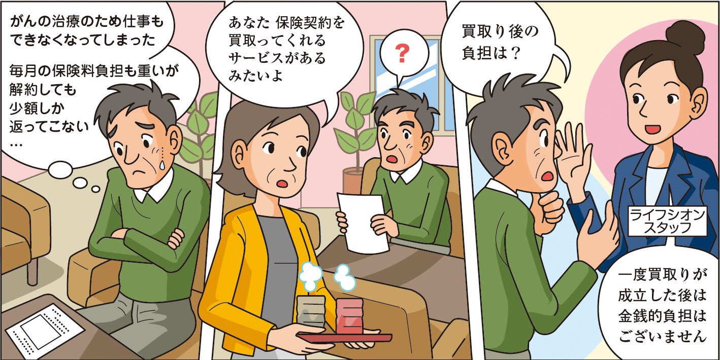 株式会社ライフシオン(本社:東京都中央区、代表取締役:我妻佳祐)は、がんと診断された方を対象とした生命保険契約の買取サービスを開始しました。がんと診断された方が、やむを得ず保険を解約するような場合に、解約返戻金・解約返還金よりも高い金額で、当社が生命保険契約を買い取ります。