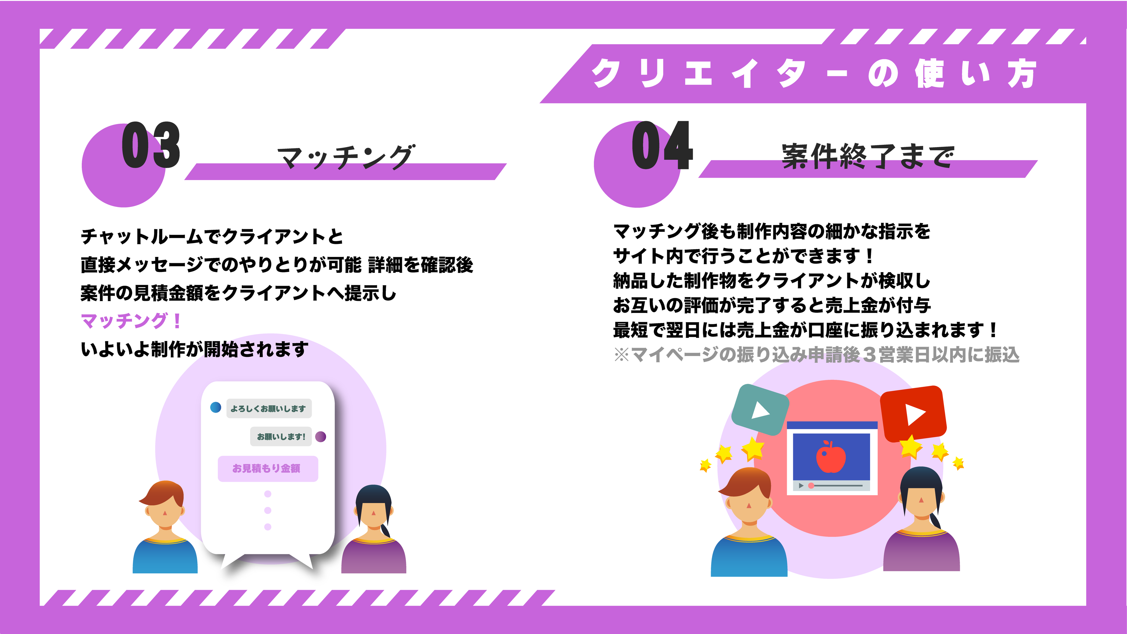 動画編集者を目指すクリエイターや、制作依頼をしたいクライアントをいち早く集客し、業界シェアNo.1を目指します!