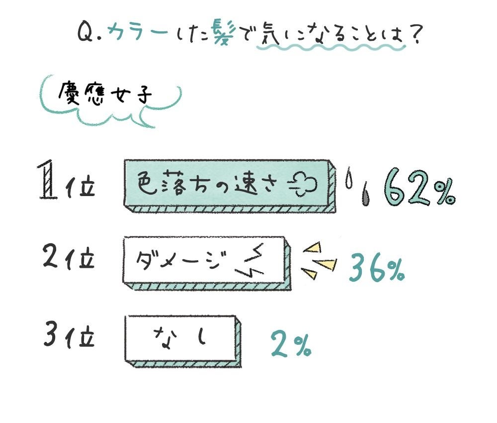 ■慶應女子はヘアカラーの色落ちに悩んでる…。