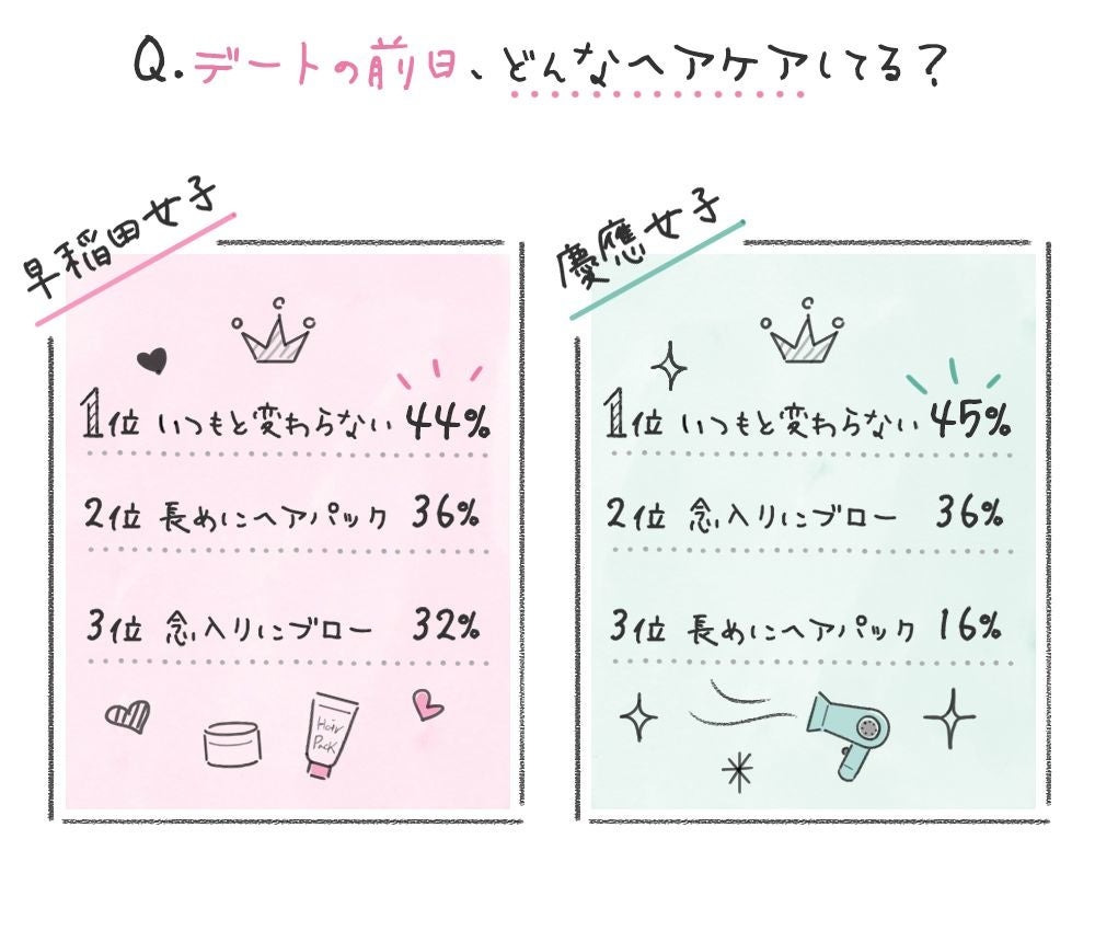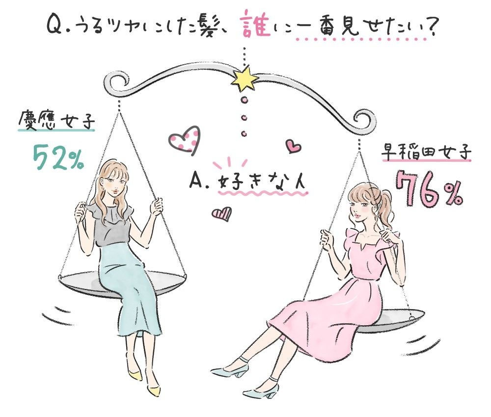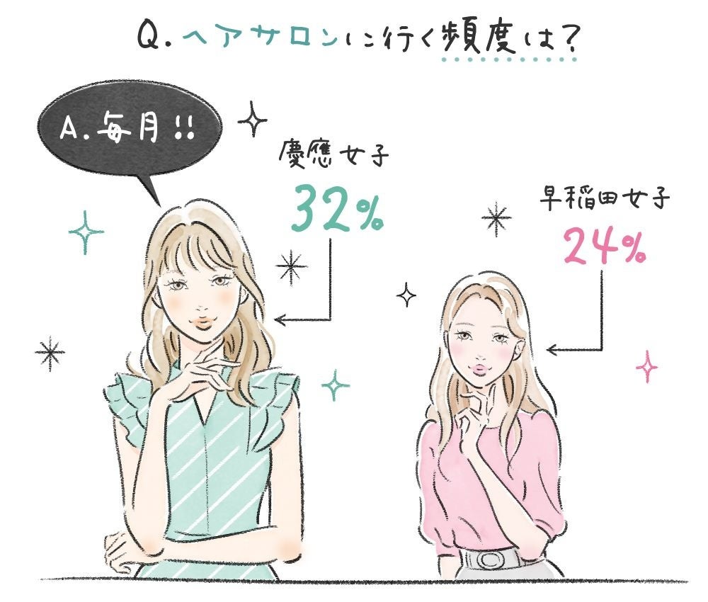 早慶女子を対象にしたヘアケア調査は、早稲田女子、慶應女子の個性が反映された結果となりました。トピックスは、下記の通りです。