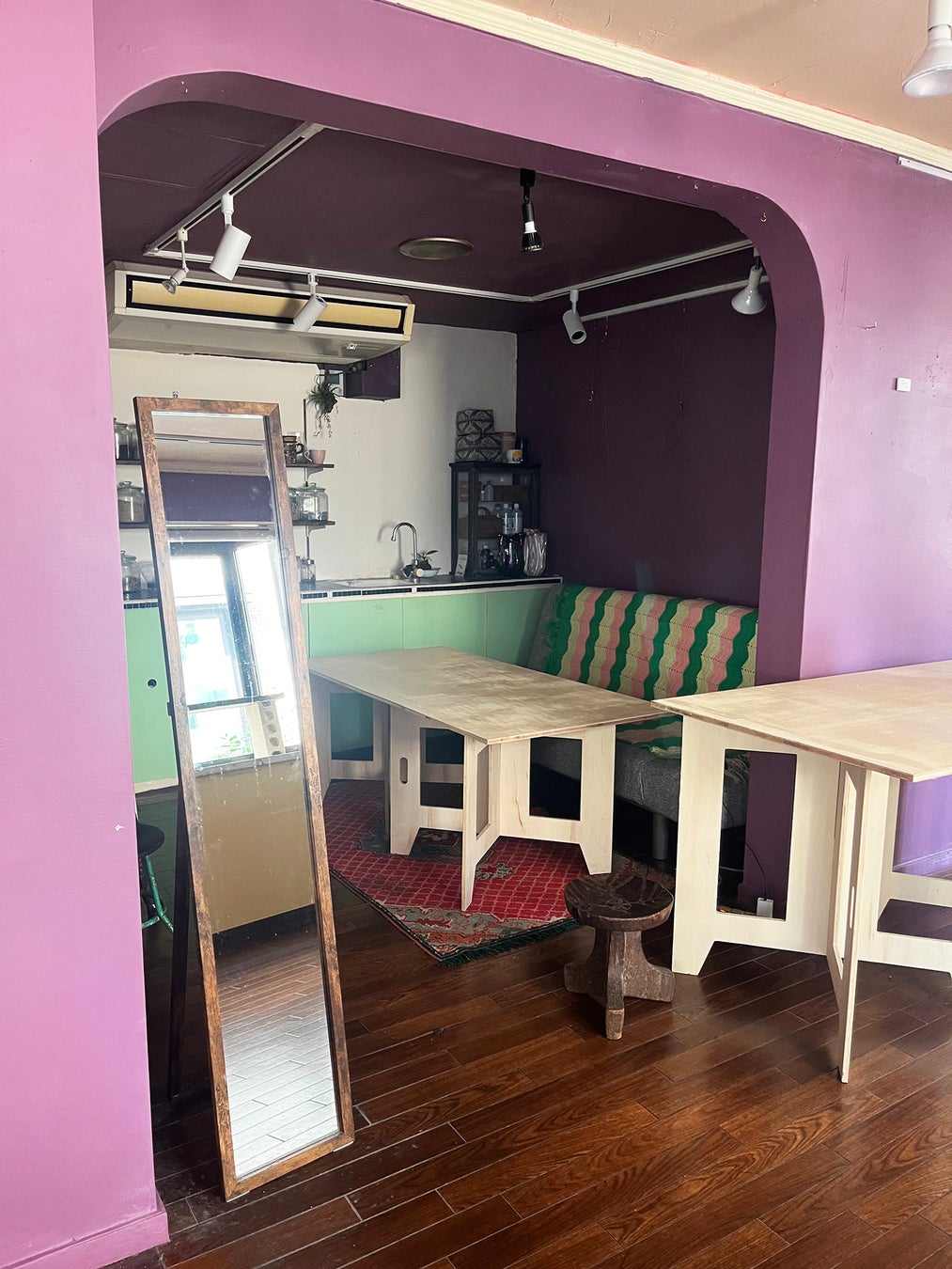 I first came here in April 2022, when PARADISO was a vintage clothing store. A friend of mine was a regular customer and brought me here. The clothes were great, of course, but I actually fell in love with this place at first sight. The purple arched walls, the layout with many bay windows, the red door, the retro building, and the location on the side of a hill brought back a series of memories: it looked like that boutique I entered in Paris, that souvenir shop I visited in Portugal, and that store I visited in that country. At the same time, I was captivated by the property, linking it to the atmosphere and wall color of the store I used to run. In November of the same year, I heard that the previous owner was closing the store, and when I went to the closing sale, I heard from the owner that the next tenant had not yet been decided. We asked about real estate and went straight to the real estate office and decided to rent the property on the spot. I had not thought about this until the day before, but I also felt that the property had appointed me in reverse, that I should not miss this chance.
