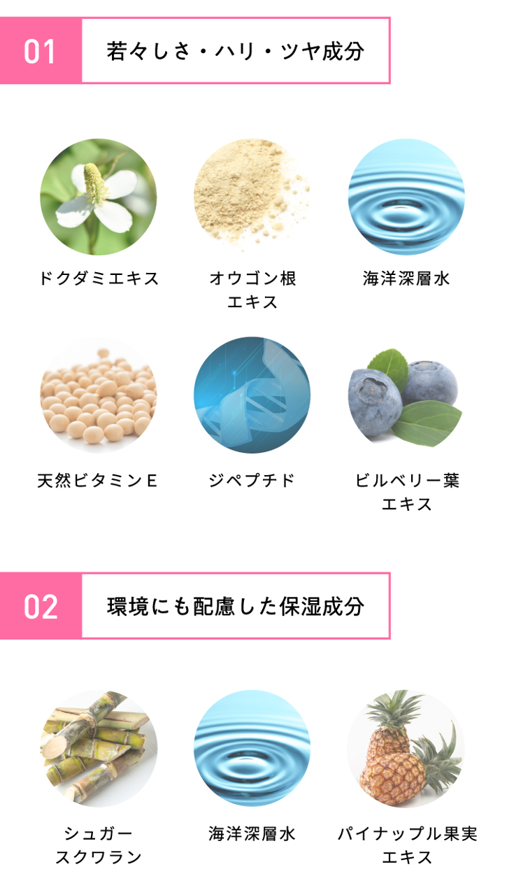 肌にも環境にもやさしく、界面活性剤・パラベン・オキシベンゾン・オクチノキサート・アルコール・香料・鉱物油の7つを使用していません。