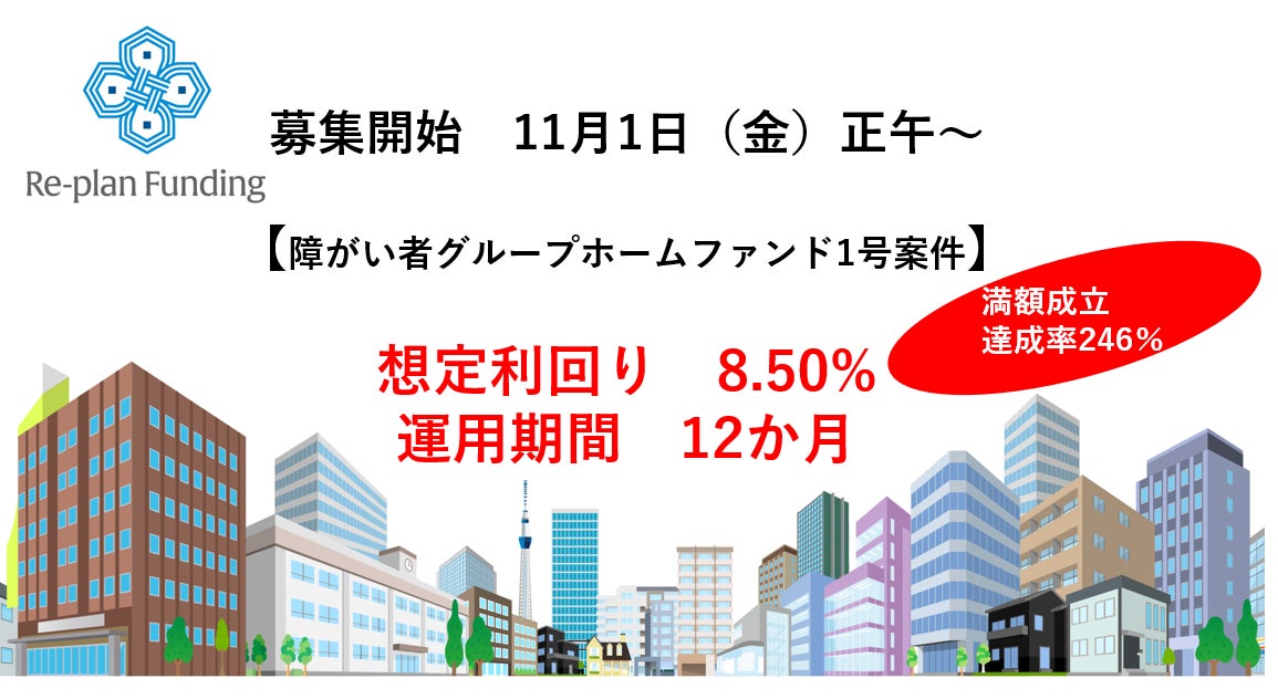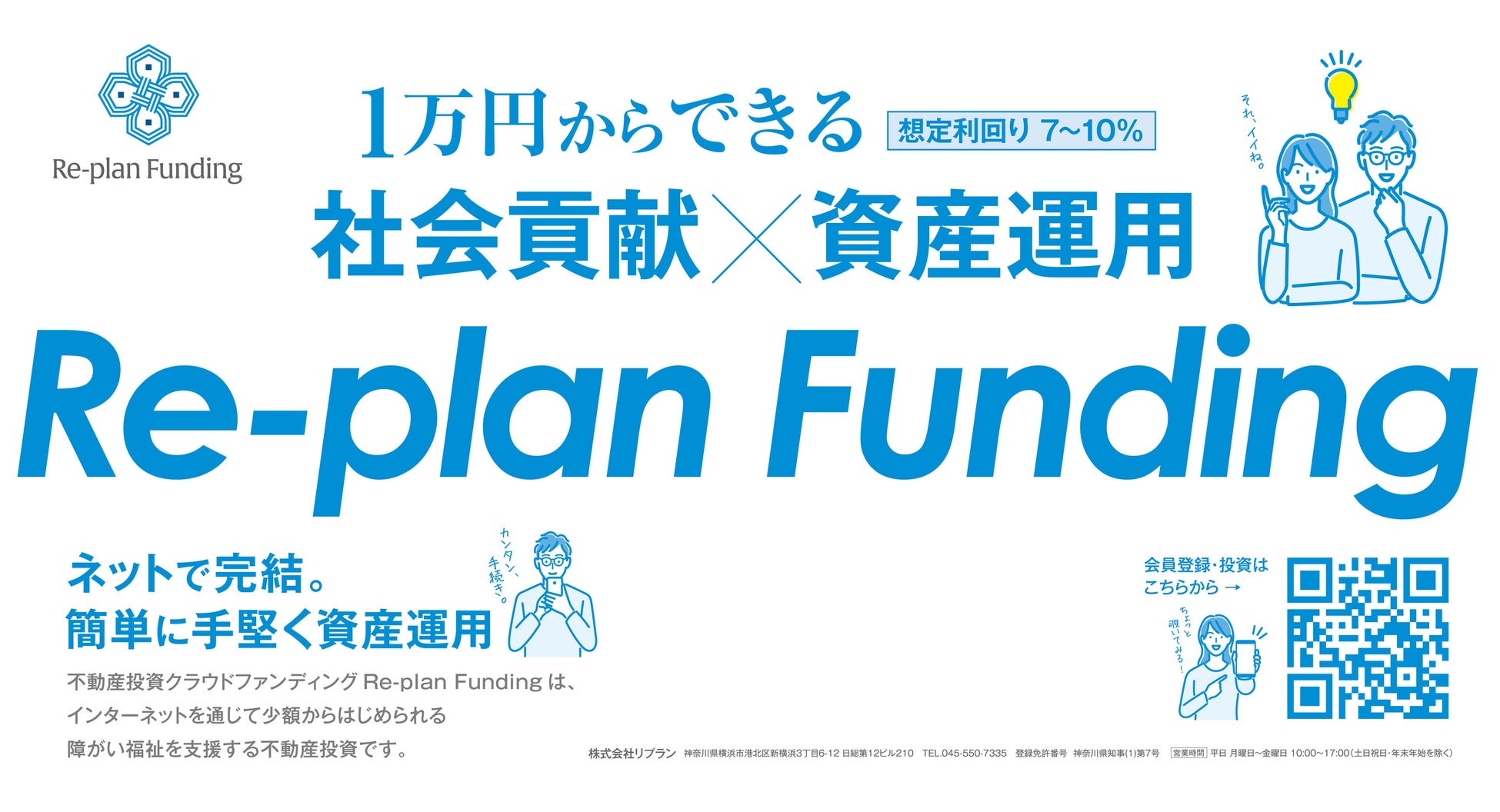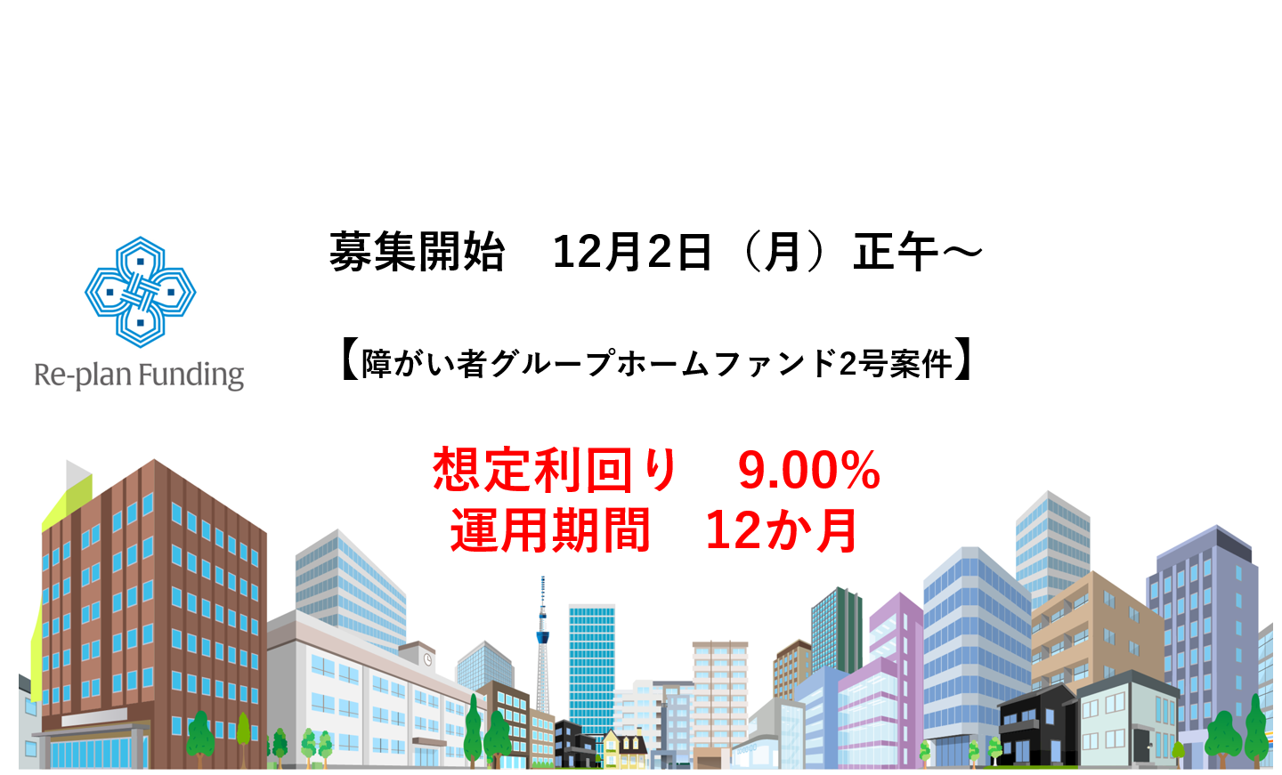 株式会社リプラン(本社:神奈川県横浜市港北区、代表取締役:三浦 洋平)は、不動産投資型クラウドファンディングサービス「Re-plan Funding」において、2024年11月18日より「インカム型 第2号グループホームファンド」の掲載をいたしますので、お知らせします。