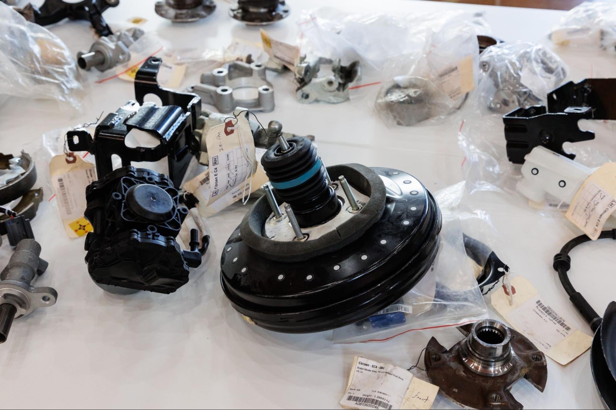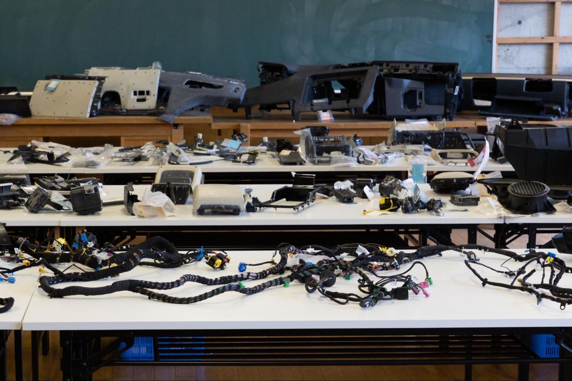 当展示場は、自動車向けベンチマーキングソリューションカンパニーであるCaresoft社(https://caresoft.co.jp/pr-page/)の技術を体験できる施設です。Volkswagen社の最新EV「ID.4 CROZZ」や上汽通用五菱汽車社の「宏光 MINI EV」など計7車種を分解し、展示しています。使われている部品をすべて無料でご覧いただけます。