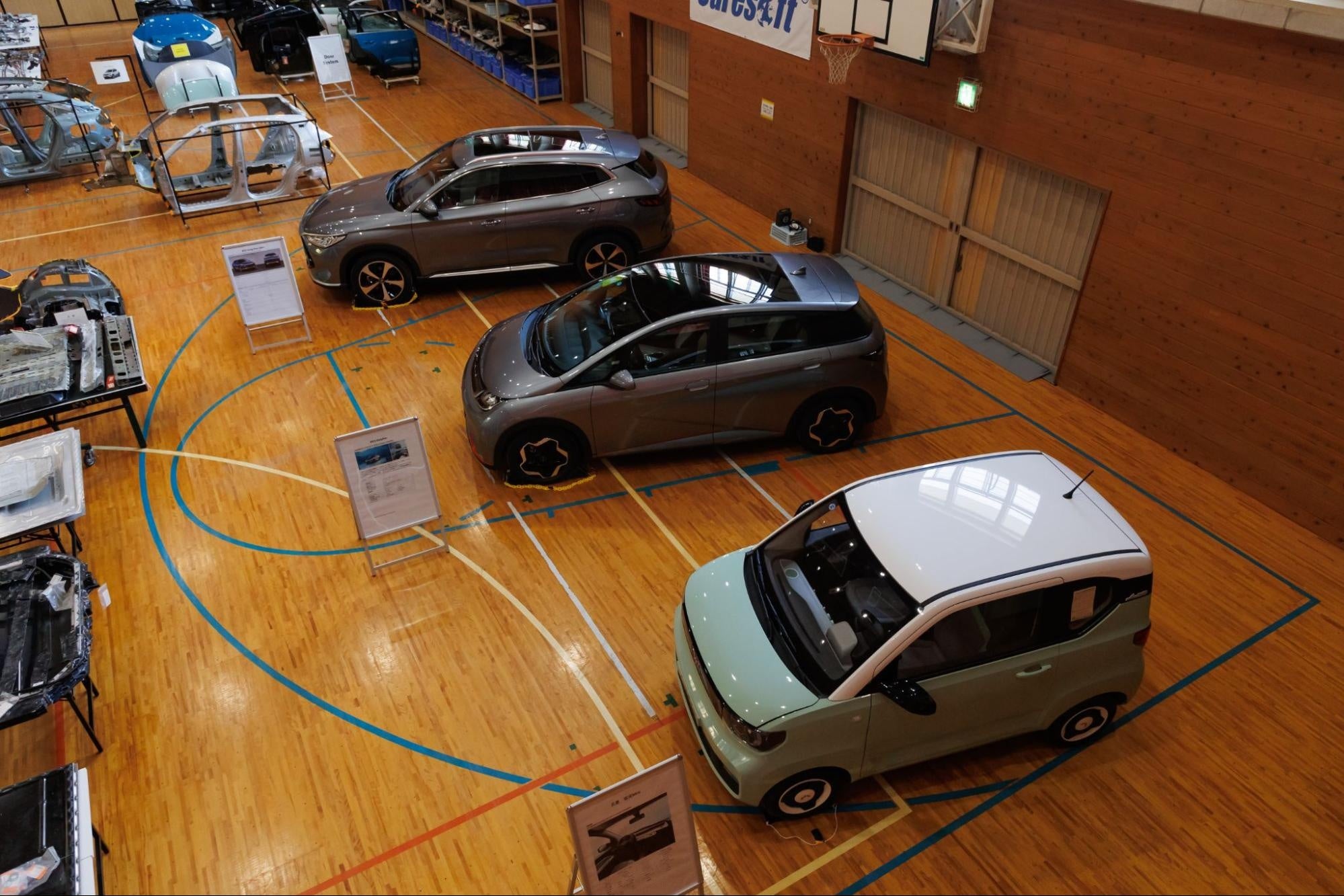 また、Tesla社や中国メーカーのEVなど、完成車を3台ご用意しております。話題となっている最新EVに試乗し、学校の敷地内を実際に走行していただくことも可能です。