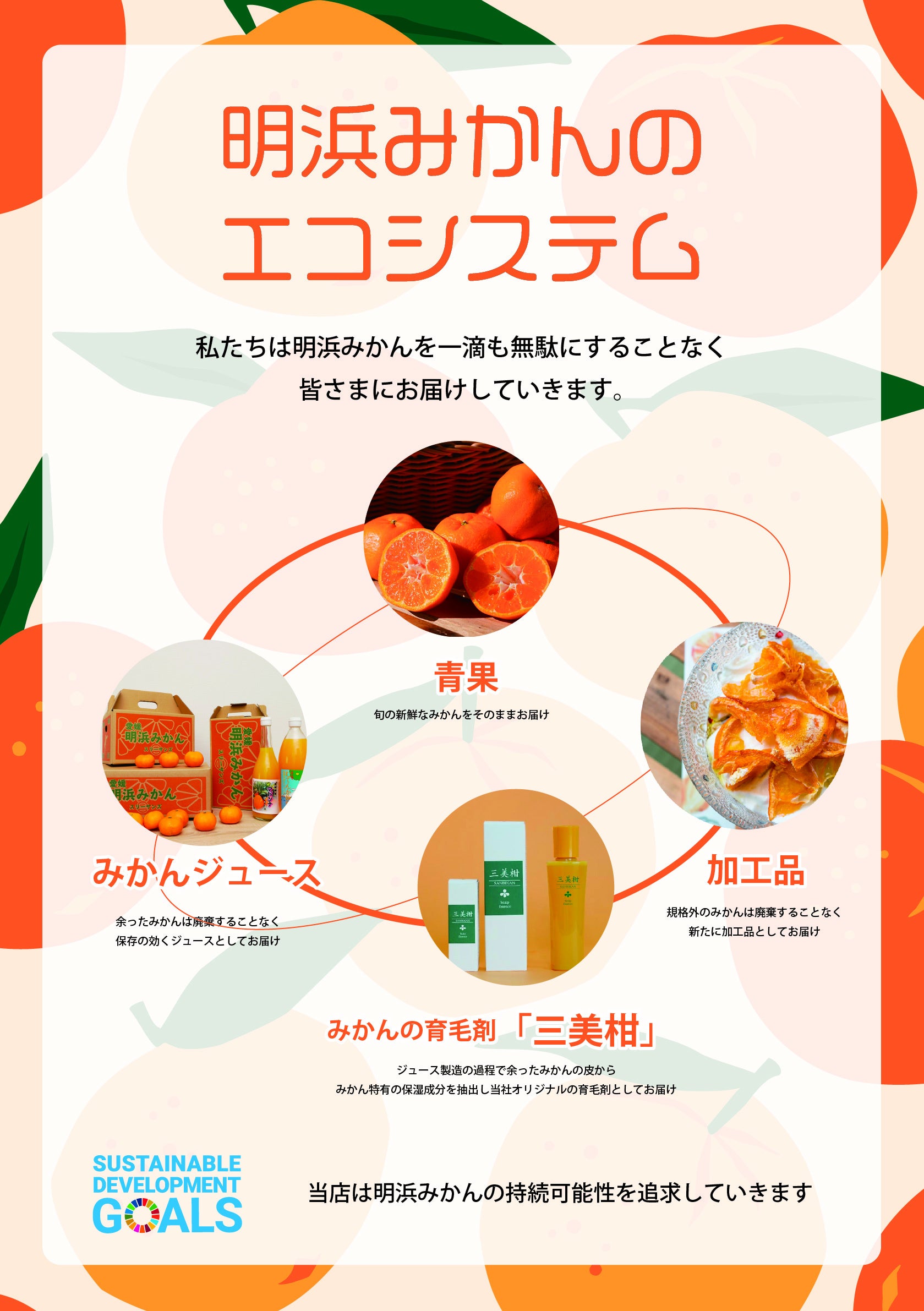 株式会社サティスファクトリーは、創業よりみかんの価値のアップデートをパーパスとし、自らがハブとなり第一次・二次・三次事業者と生活者をつなげ、みかんを通して関わる人たちを笑顔にすることをビジョンに、愛媛県明浜町(あけはままち)でつくられるおみかん『明浜みかん』のブランド化とみかんでくらしに満足を創り出すことをミッションとし、みかんを一滴も無駄にしないことを追求してきました。それが、地域農業の"持続可能性=サスティナビリティ"の実現に繋がると信じて...