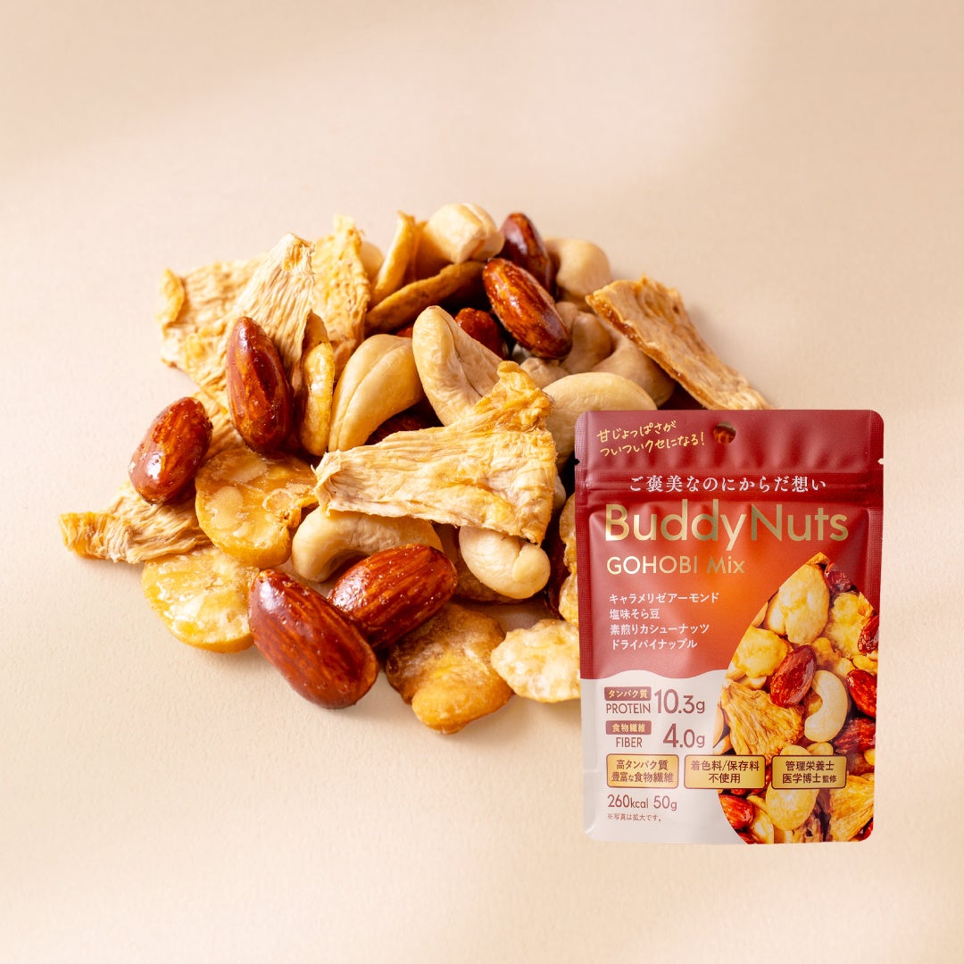 甘じょっぱさがついクセになる、毎日のおやつに嬉しい“ごほうび” クリスマスのプチギフトにもピッタリ「BuddyNuts<GOHOBI Mix>」12月3日(水)より新発売!