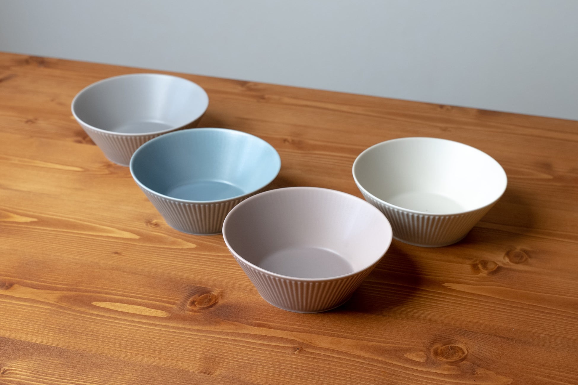 側面に描かれた縦縞模様は、日本を代表する伝統文様のひとつ「十草(とくさ)」をモチーフにしました。現代的なデザインと思わせながら、さりげなく伝統柄を忍ばせ、ひと味違う器に仕上げました。
