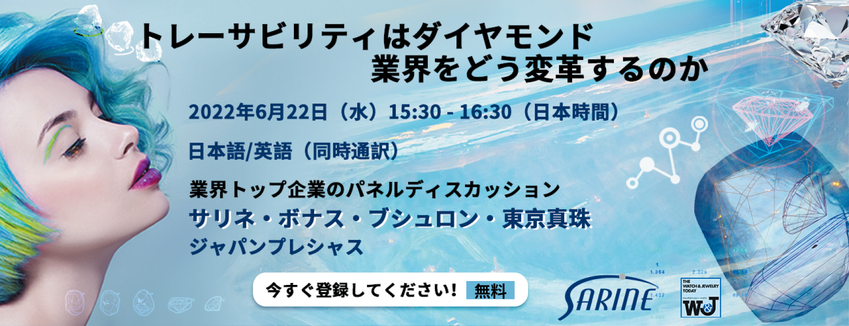 時計美術宝飾新聞社(本社:東京都台東区)とSarine Technologies Ltd.(本社:イスラエル)は、2022年6月22日(水)15:30より、オンラインにて「トレーサビリティはダイヤモンド業界をどう変革するのか」と題したジュエリー業界向けウェビナーを開催致します。ダイヤモンドの世界トップテクノロジー企業であるSarine社のCEO、David Block、老舗ジュエリーメゾンのブシュロンのFluorence Inumaruなどダイヤモンド業界のリーダーたちによるパネルディスカッション形式で、トレーサビリティと原産地証明に焦点を当てたダイヤモンドの業界の今後について語ります。